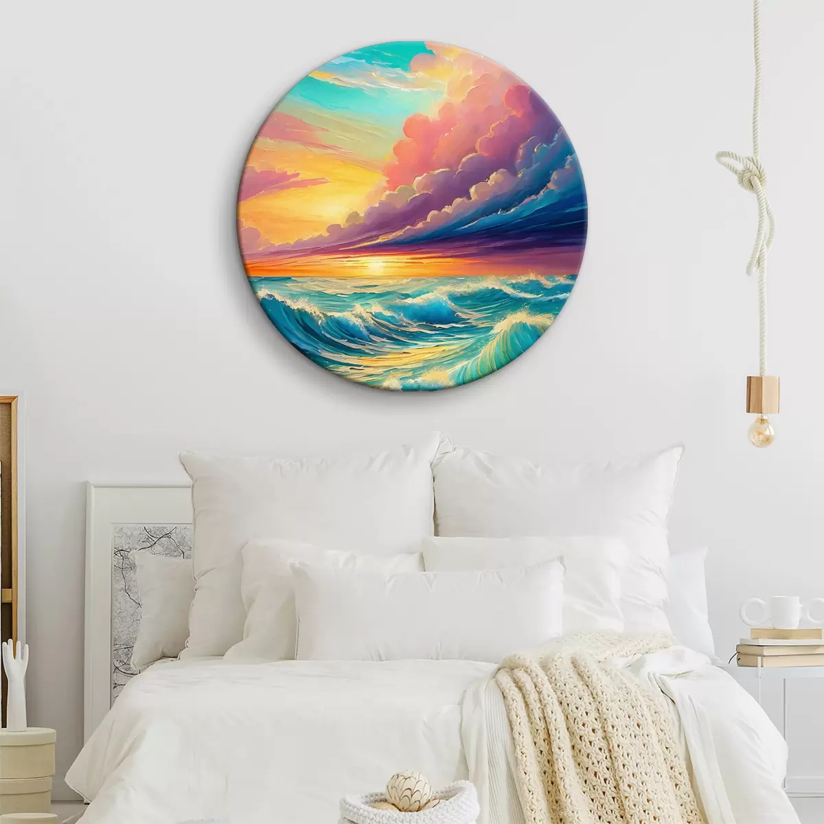 Кругла картина Призахідні хвилі танцюють під намальованим небом r36588