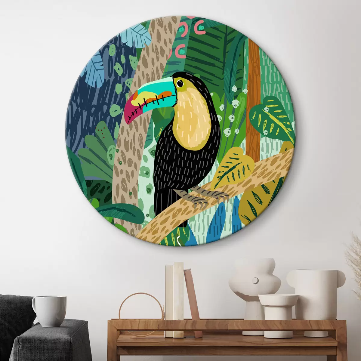 Кругла картина Тукан у джунглях Nr r36595