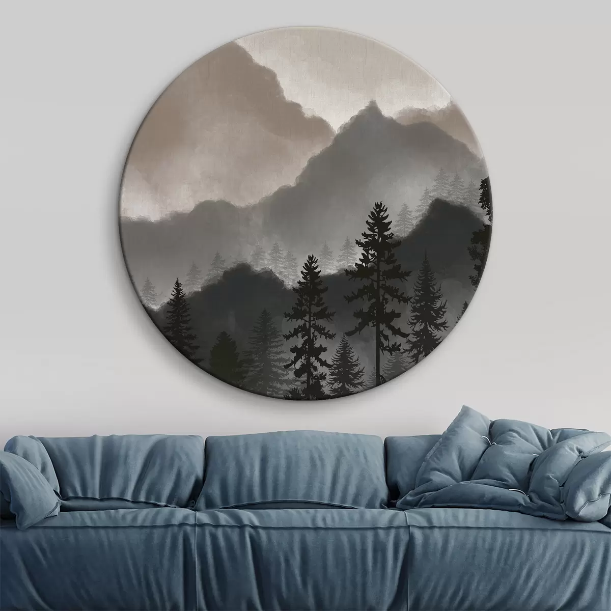 Кругла картина Анотація аквареллю гори r36607v1