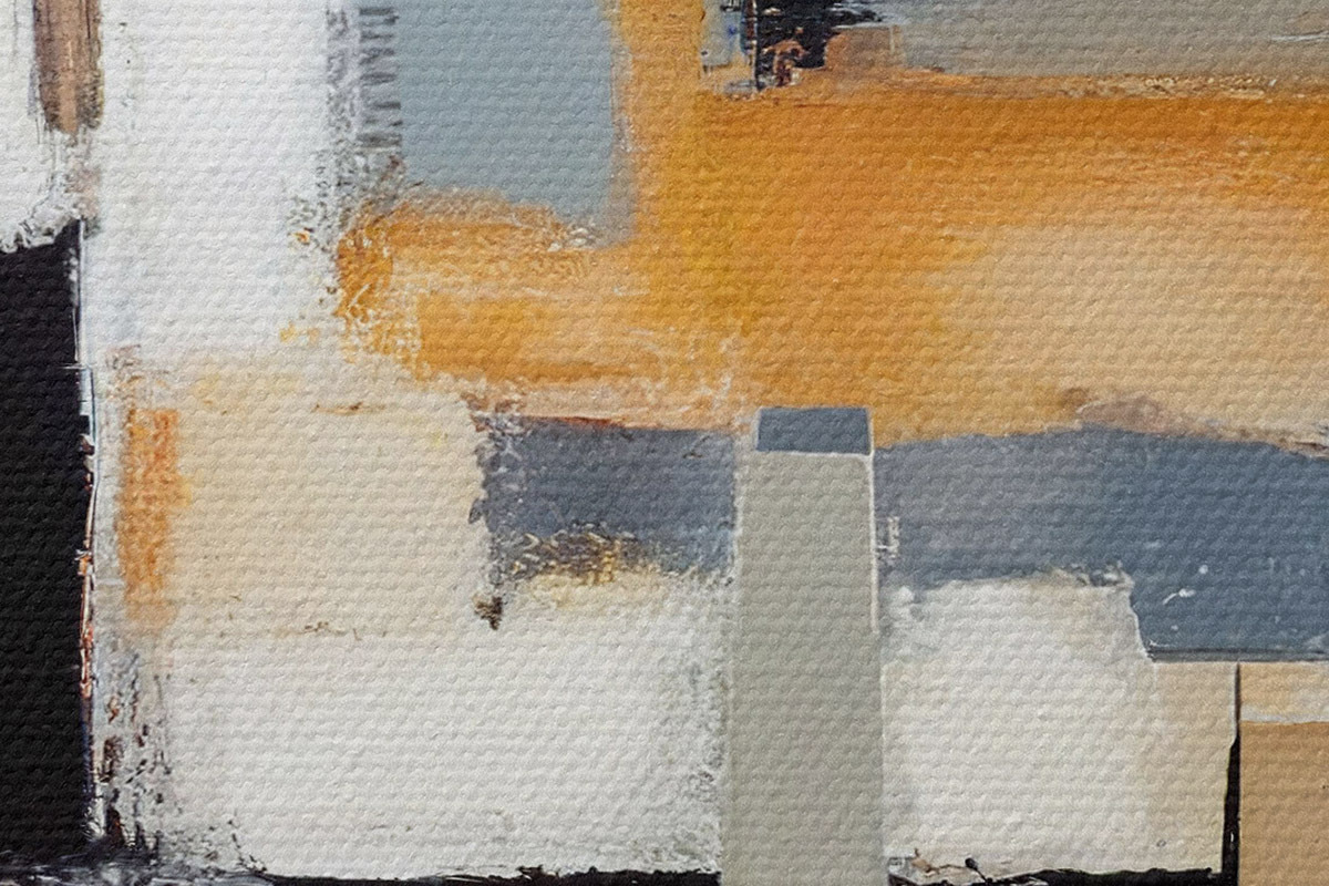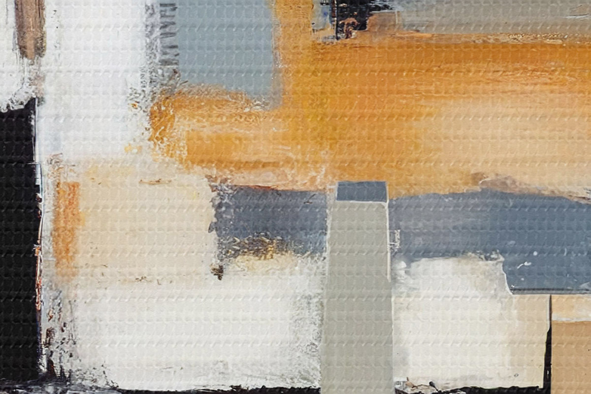 Кругла картина Бежево-сіра абстракція з помаранчевим і білим Nr r36624