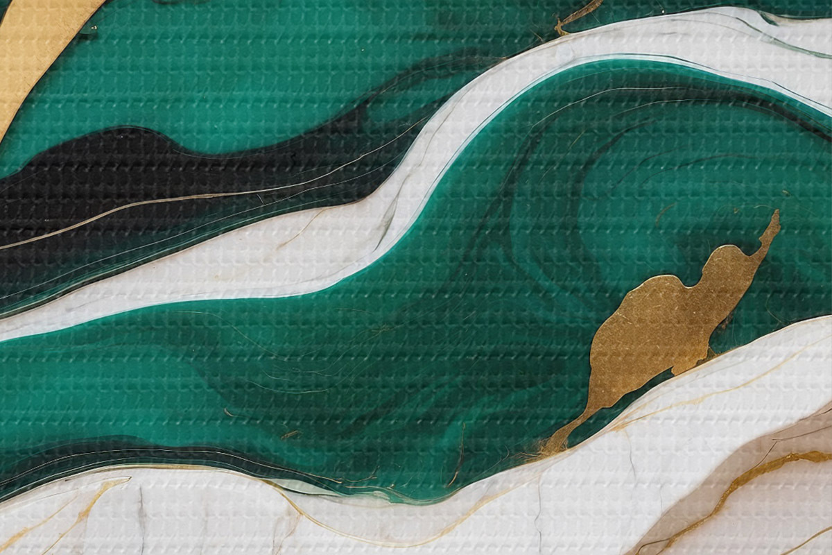 Кругла картина Акварельна абстракція на мармурі в зеленому, білому та золотому кольорах r36645