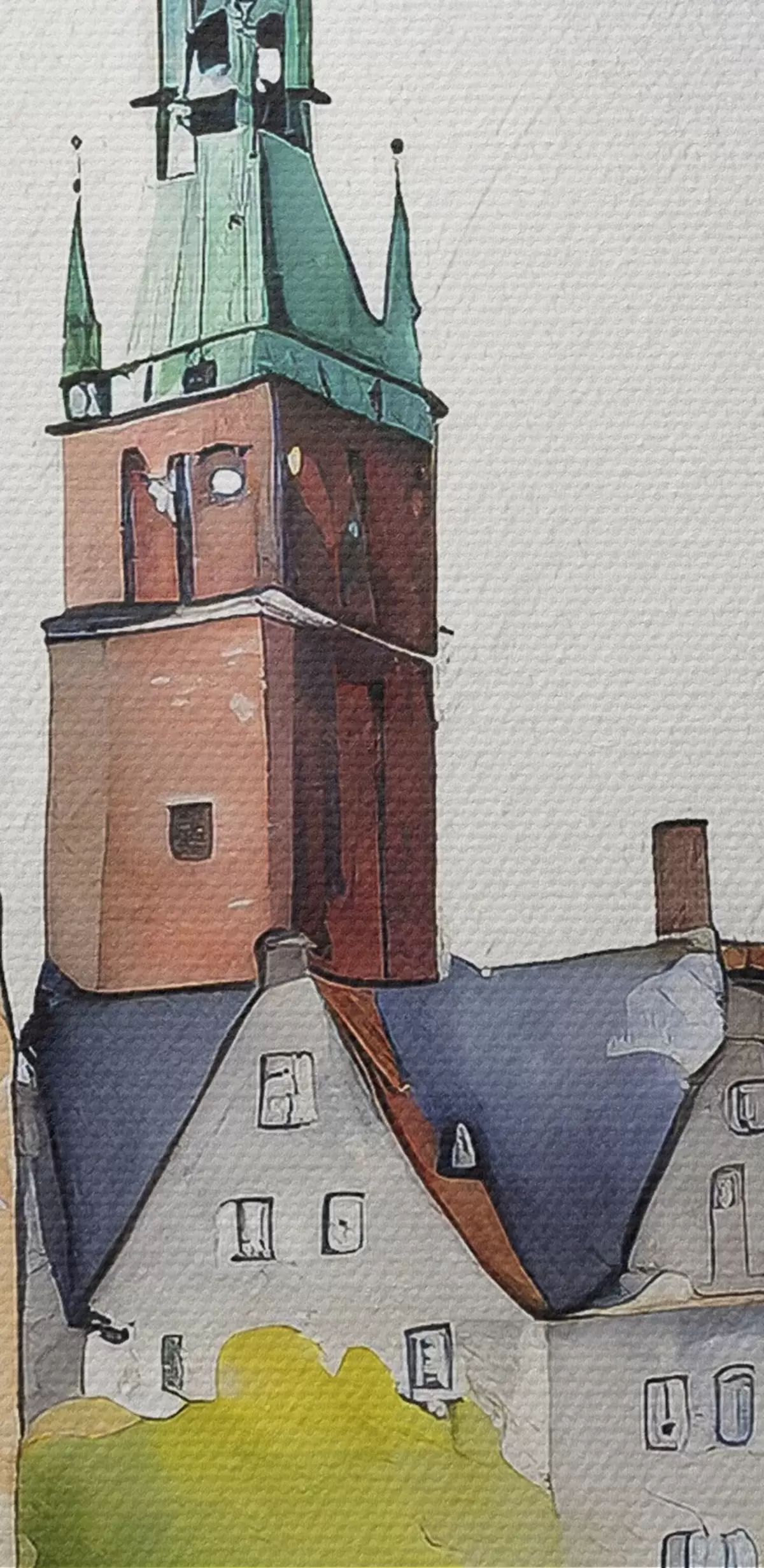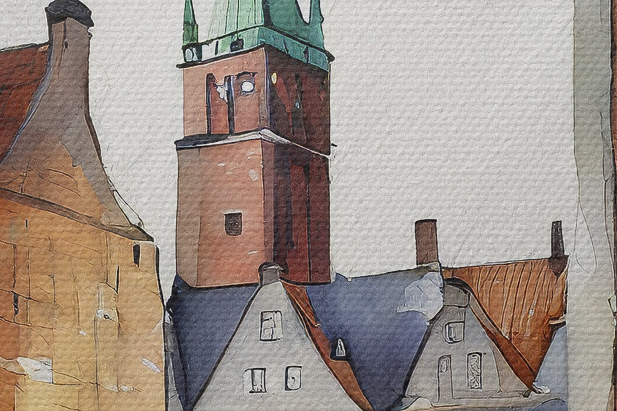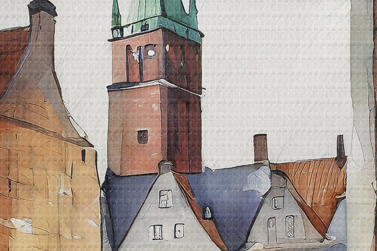 Кругла картина Данські вулиці, акварель, архітектурний малюнок Nr r36682