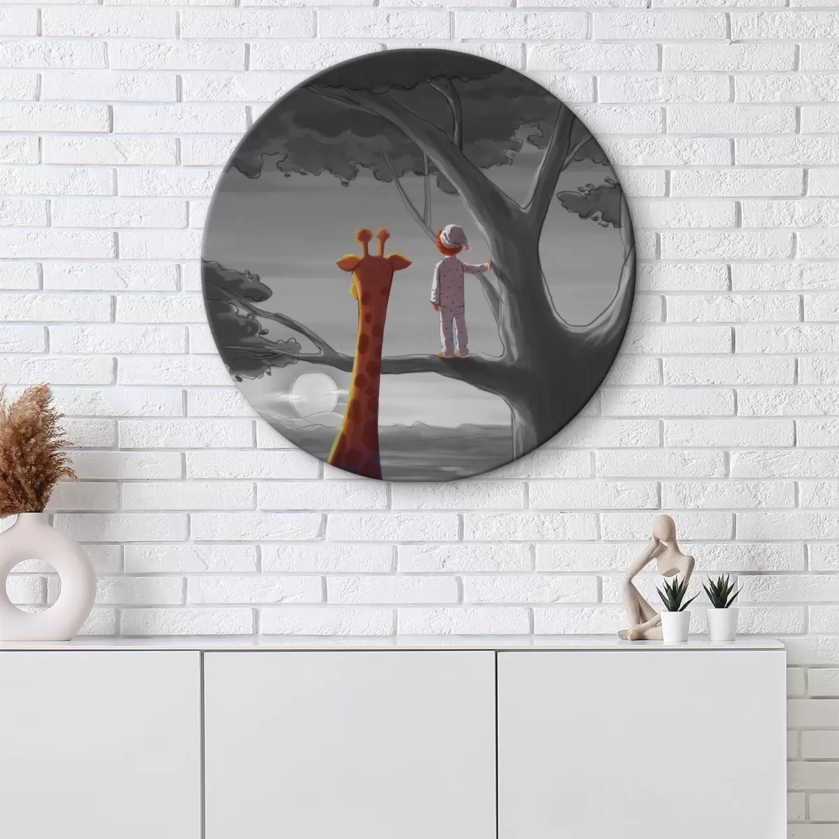 Кругла картина Жирафа з дитинчам стоїть на дереві r36700