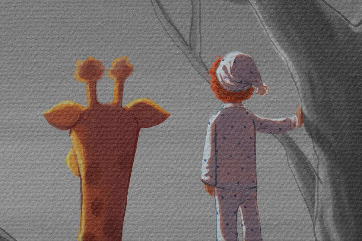Кругла картина Жирафа з дитинчам стоїть на дереві Nr r36700