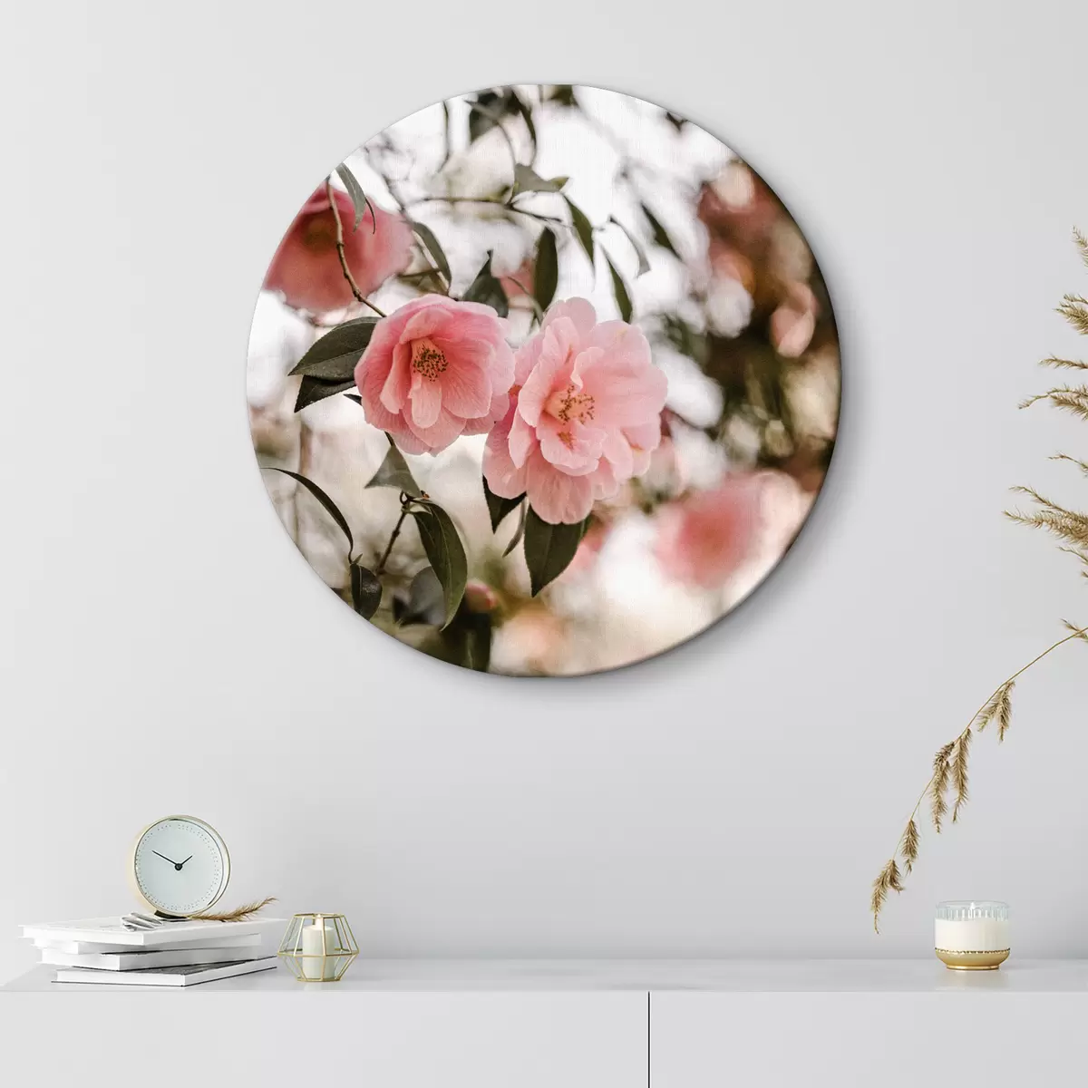 Кругла картина Рожеві квіти на дереві r36709