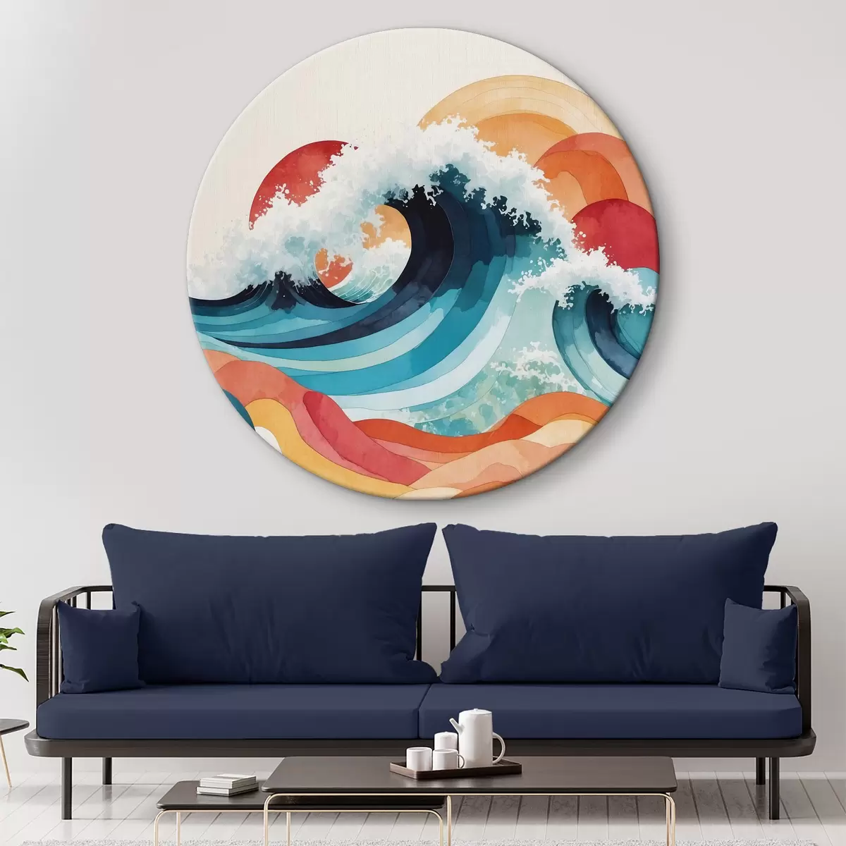 Кругла картина Бурхливе море в акварелі Nr r36798
