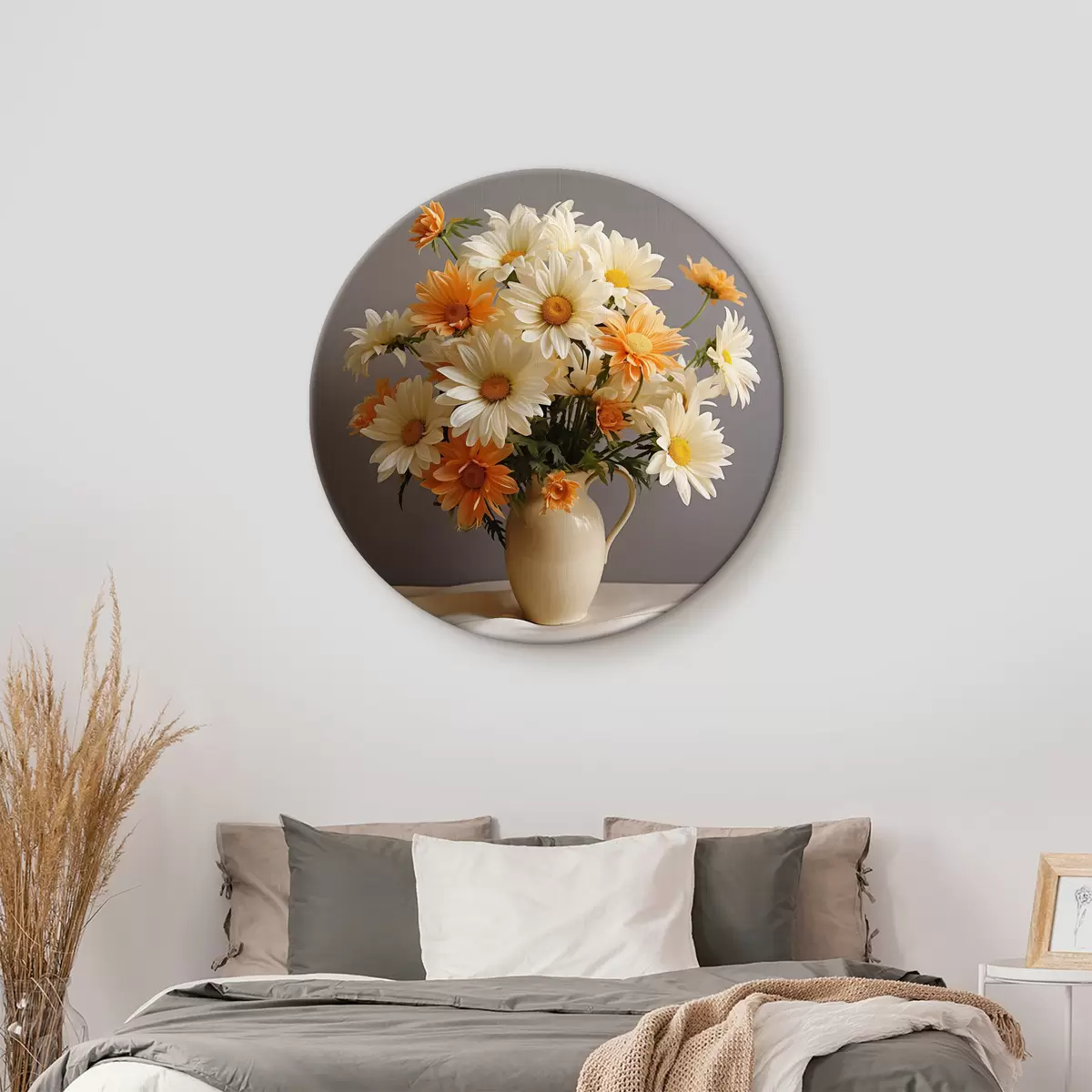 Кругла картина Ваза з квітами на столі Nr r36812