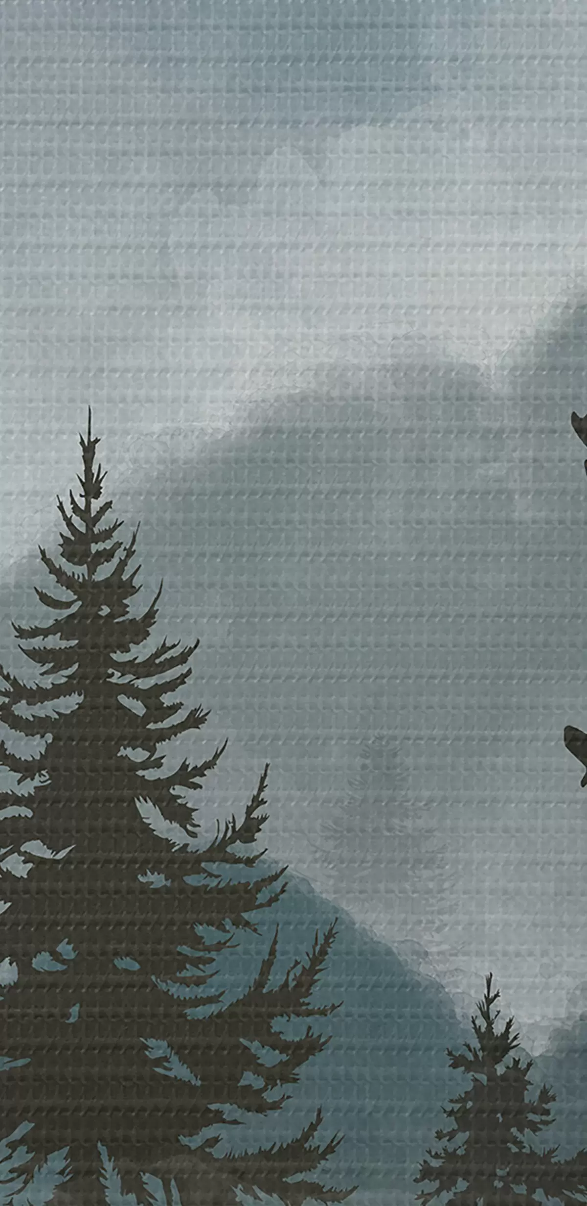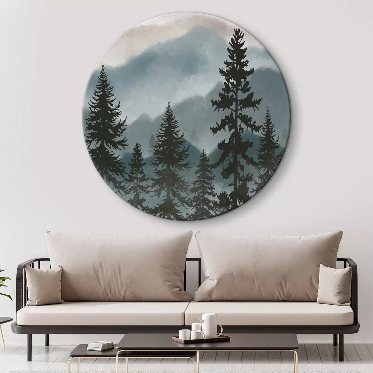 Кругла картина Гірський пейзаж з ялинками в акварелі Nr r37017