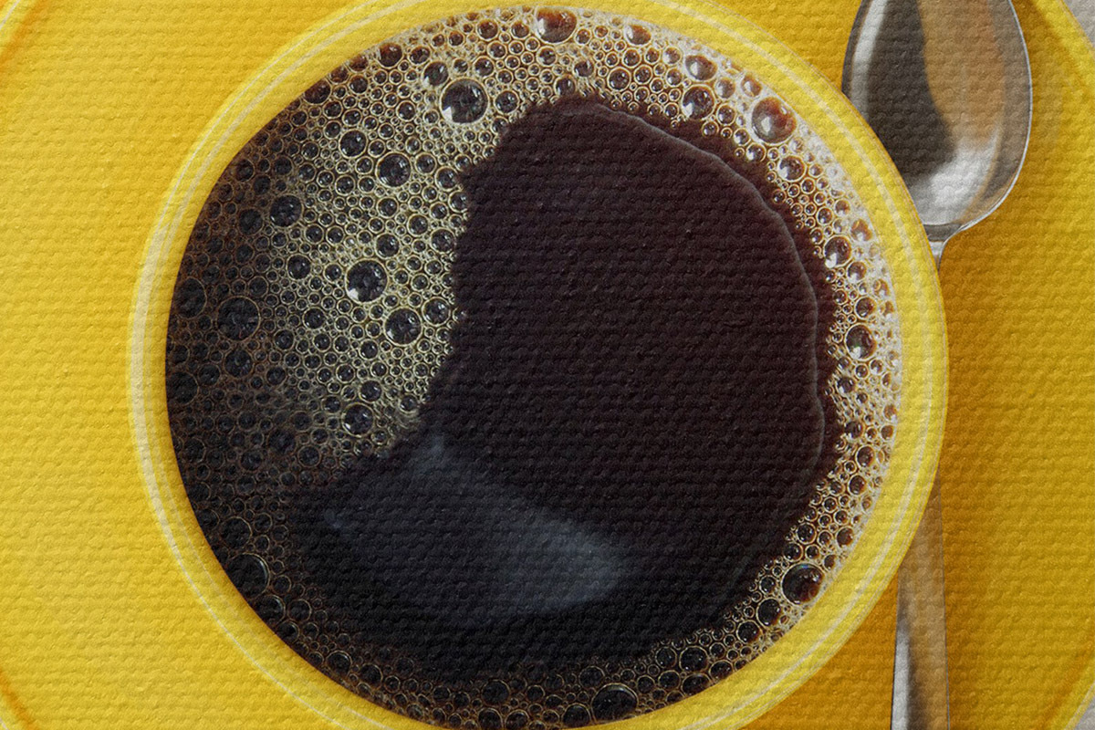 Кругла картина Жовте горнятко з кавою та зернами r37041