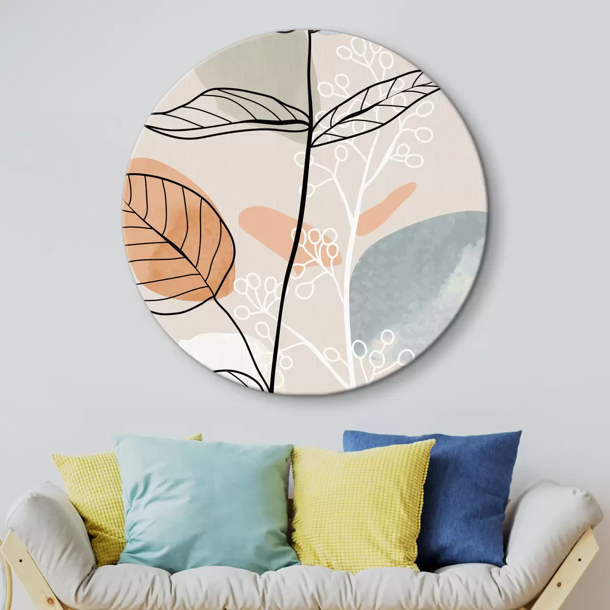 Кругла картина Акварельне листя в богемному стилі Nr r37052