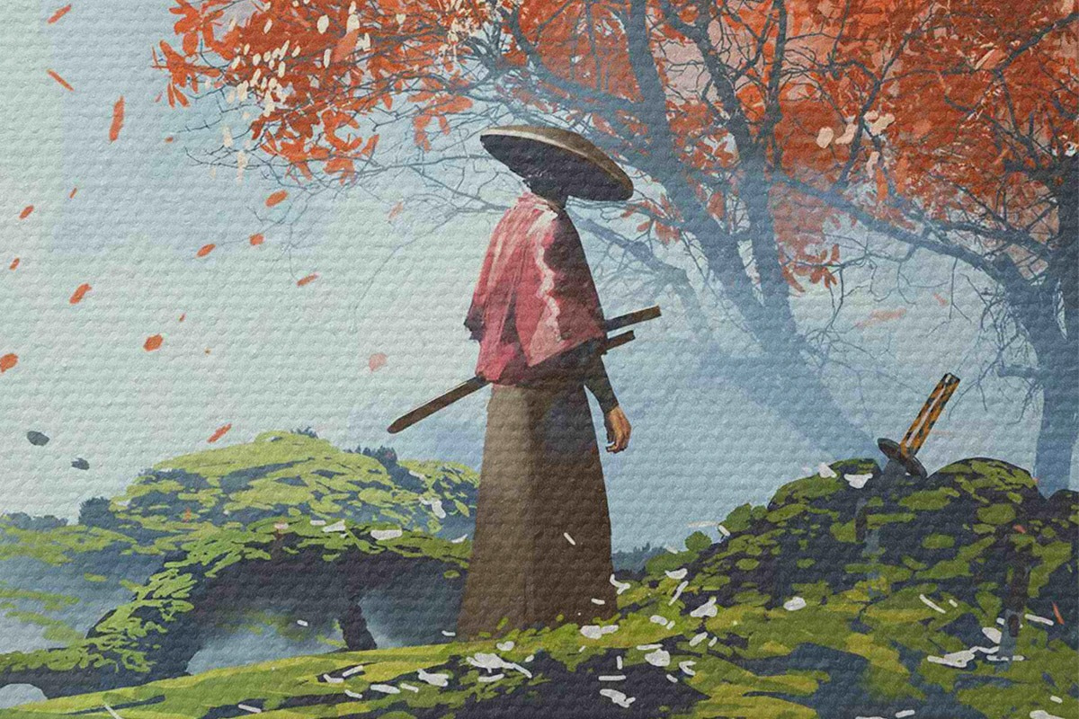 Кругла картина Самотній японський самурай Nr r37105