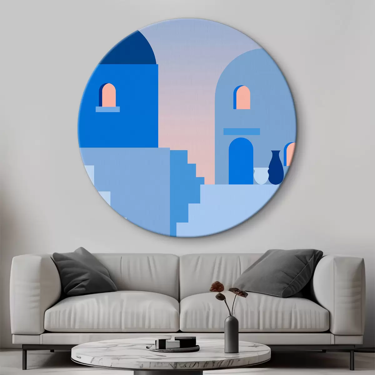 Кругла картина Архітектура в східному стилі, геометричні будинки, кольори сонця, що сходить Nr r37133