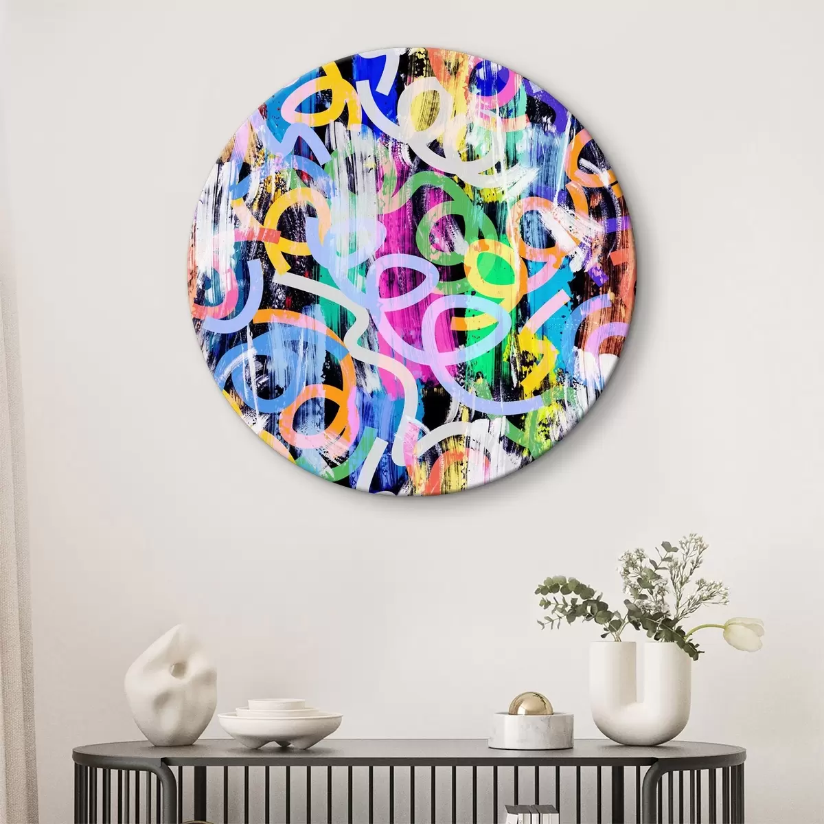 Кругла картина Барвистий візерунок з білими та синіми колами Nr r37145