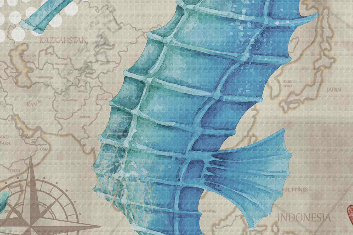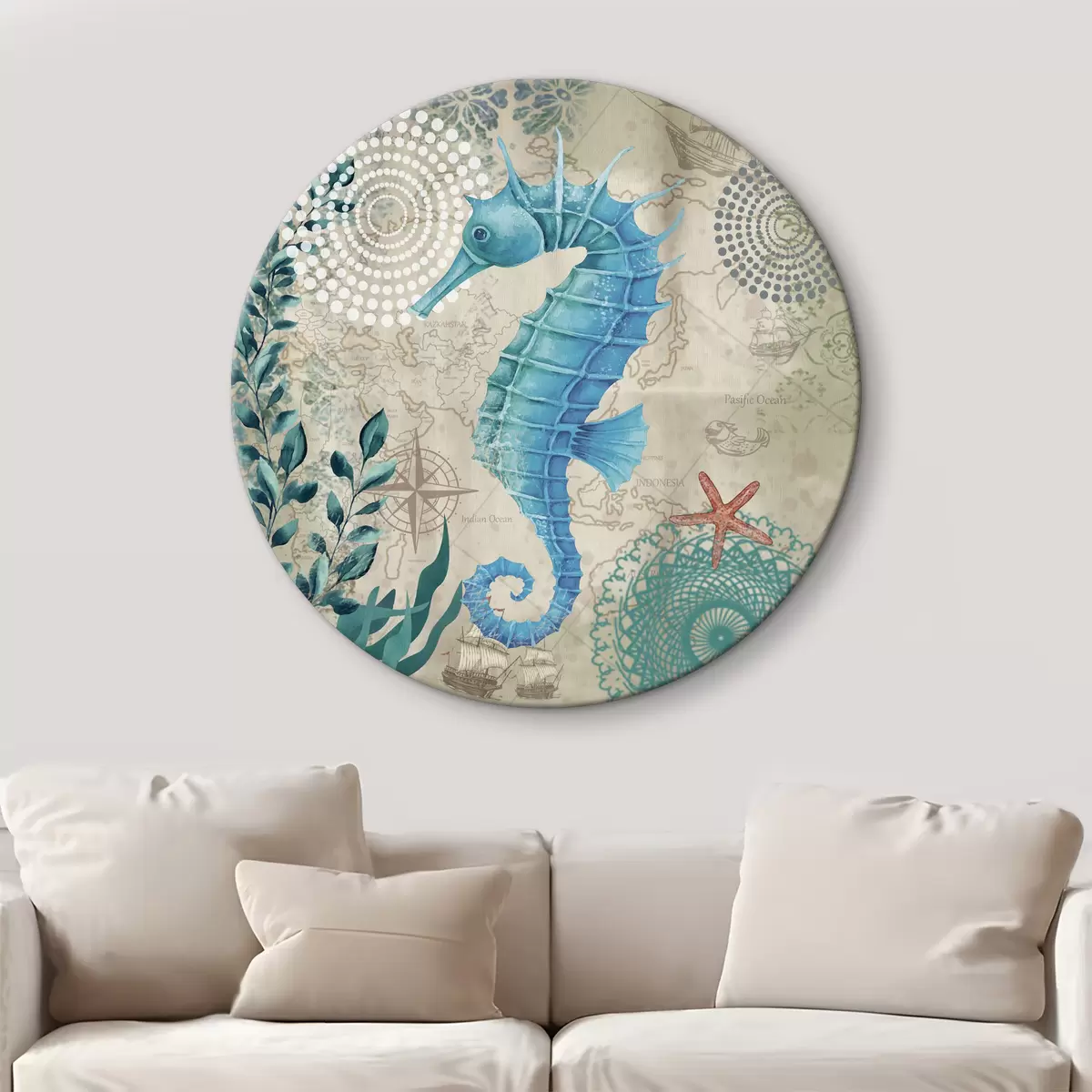 Кругла картина Морський коник і водорості на карті r37152