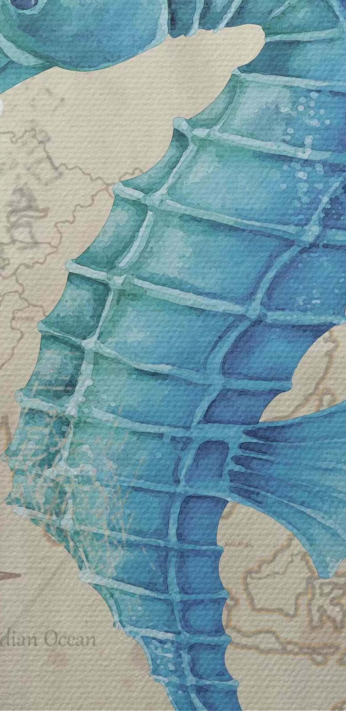 Кругла картина Морський коник і водорості на карті Nr r37152
