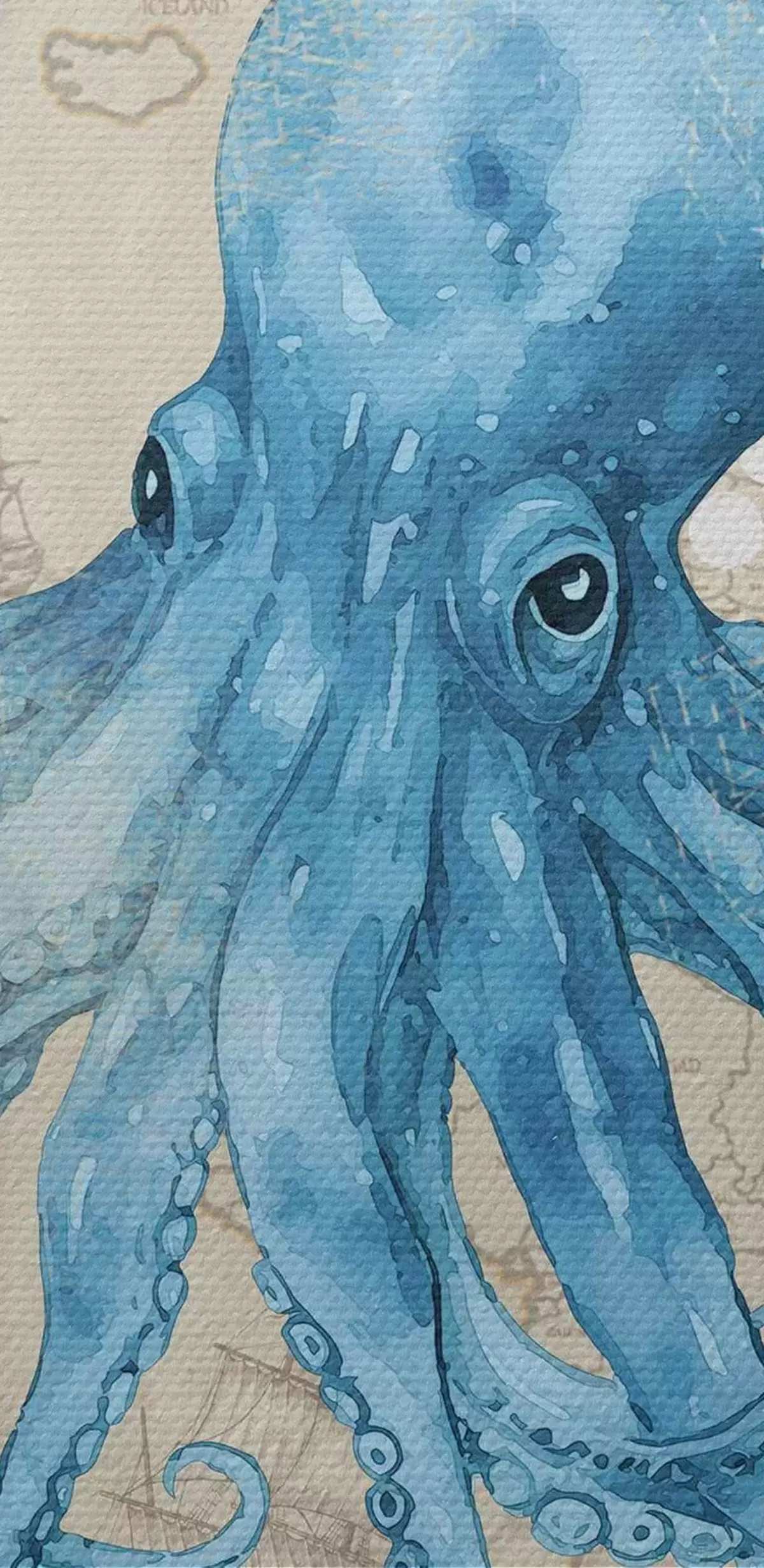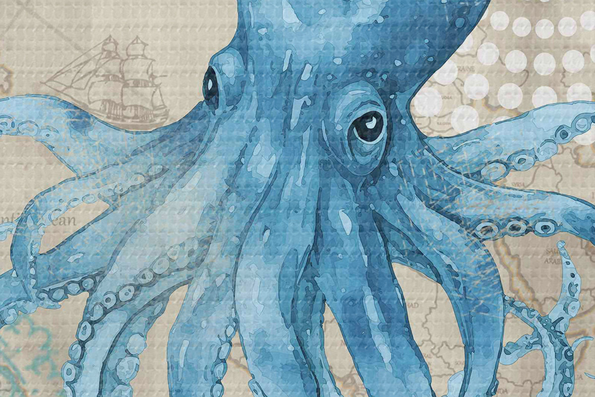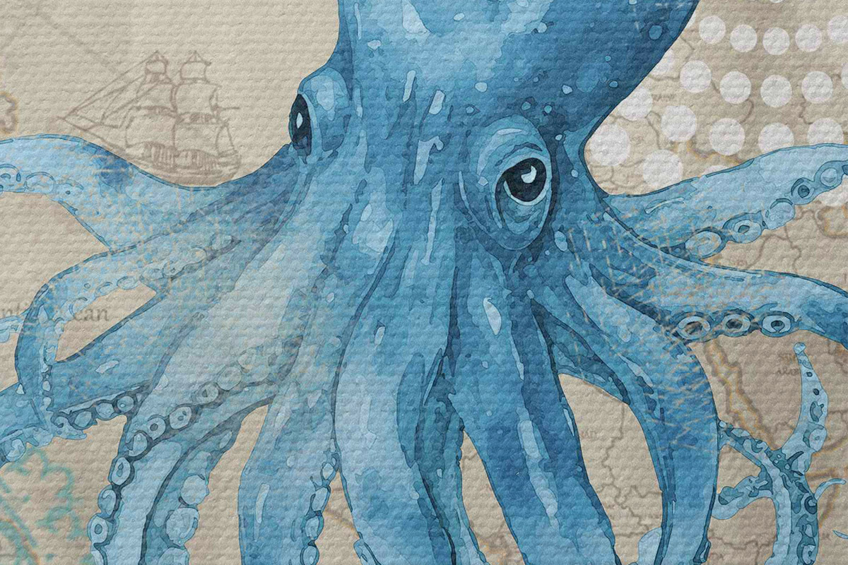 Кругла картина Синій восьминіг з мапою океану Nr r37154