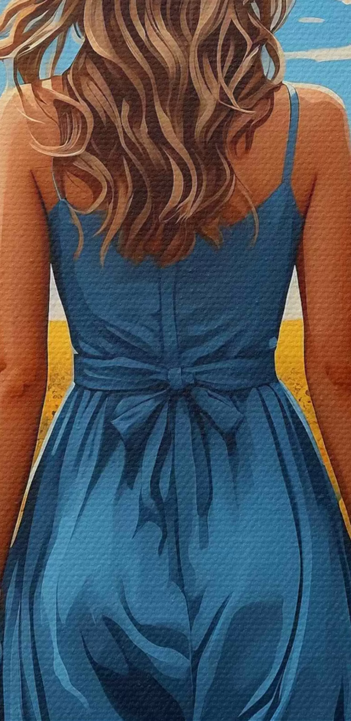 Кругла картина Жінка в синій сукні на соняшниковому полі r37164