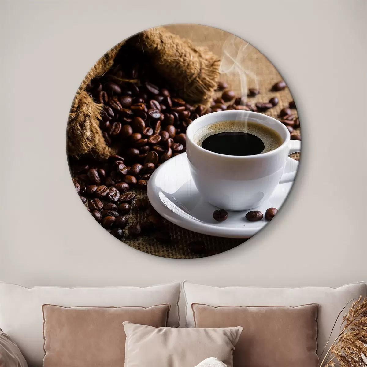 Кругла картина Ароматна кава та кавові зерна Nr r37172