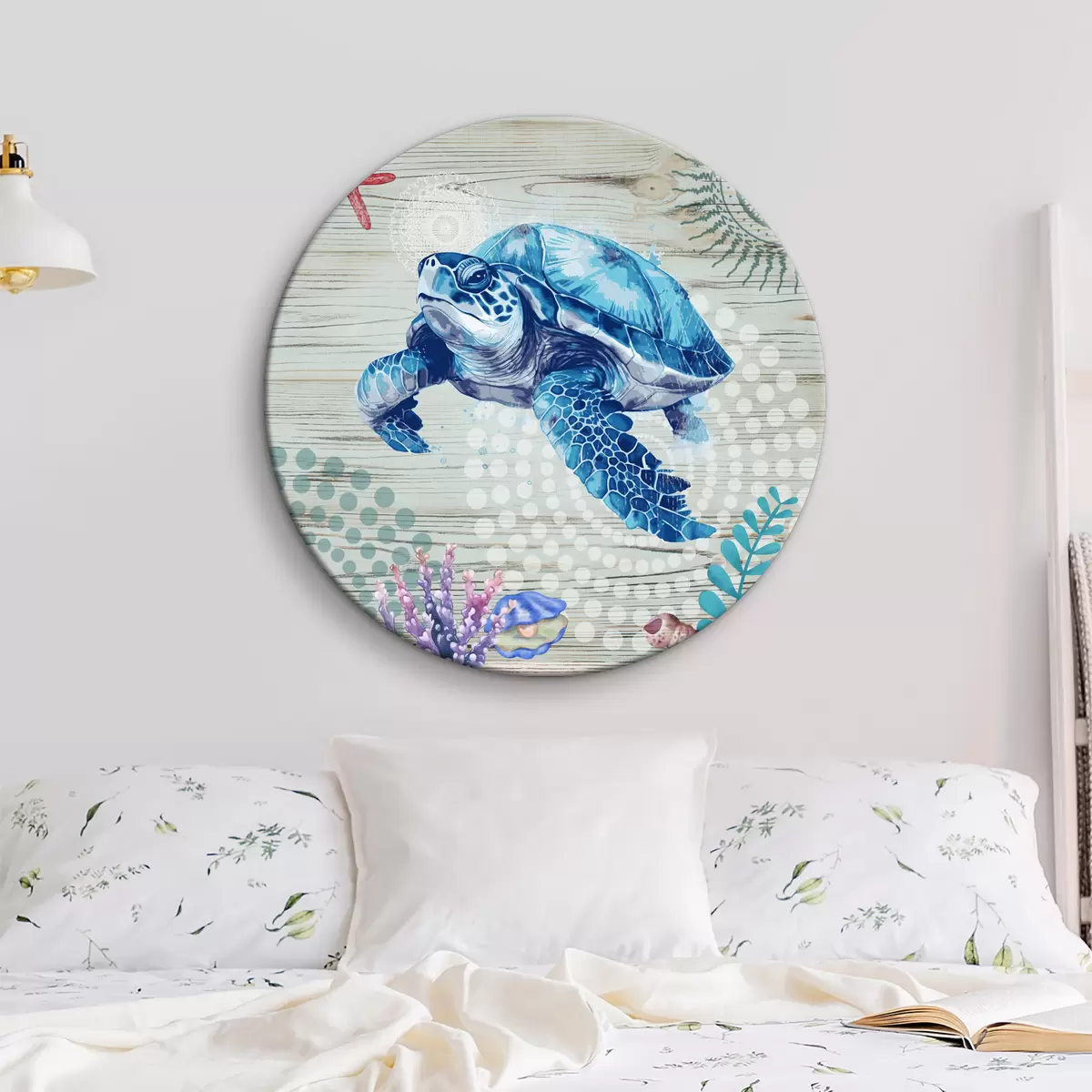 Кругла картина Морська абстракція з черепахою Nr r37239