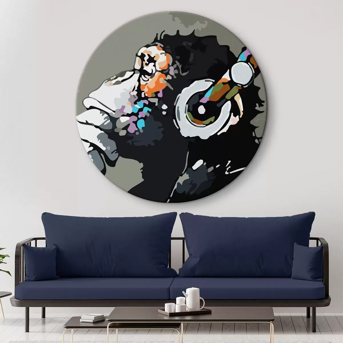 Кругла картина Мавпа в навушниках на сірому тлі Nr r37269
