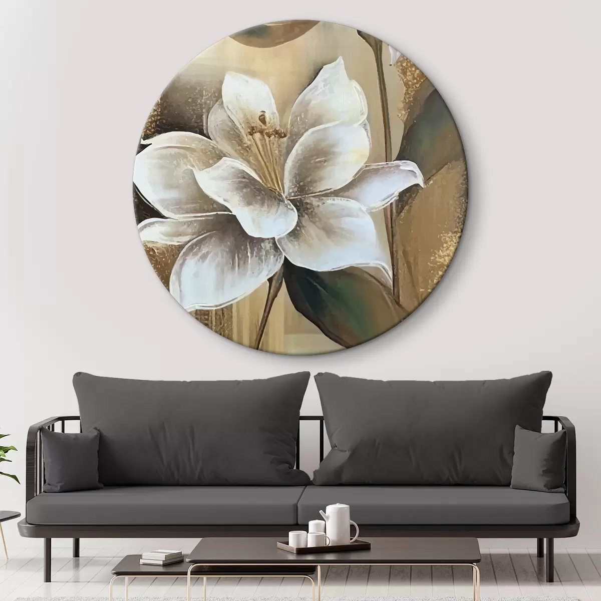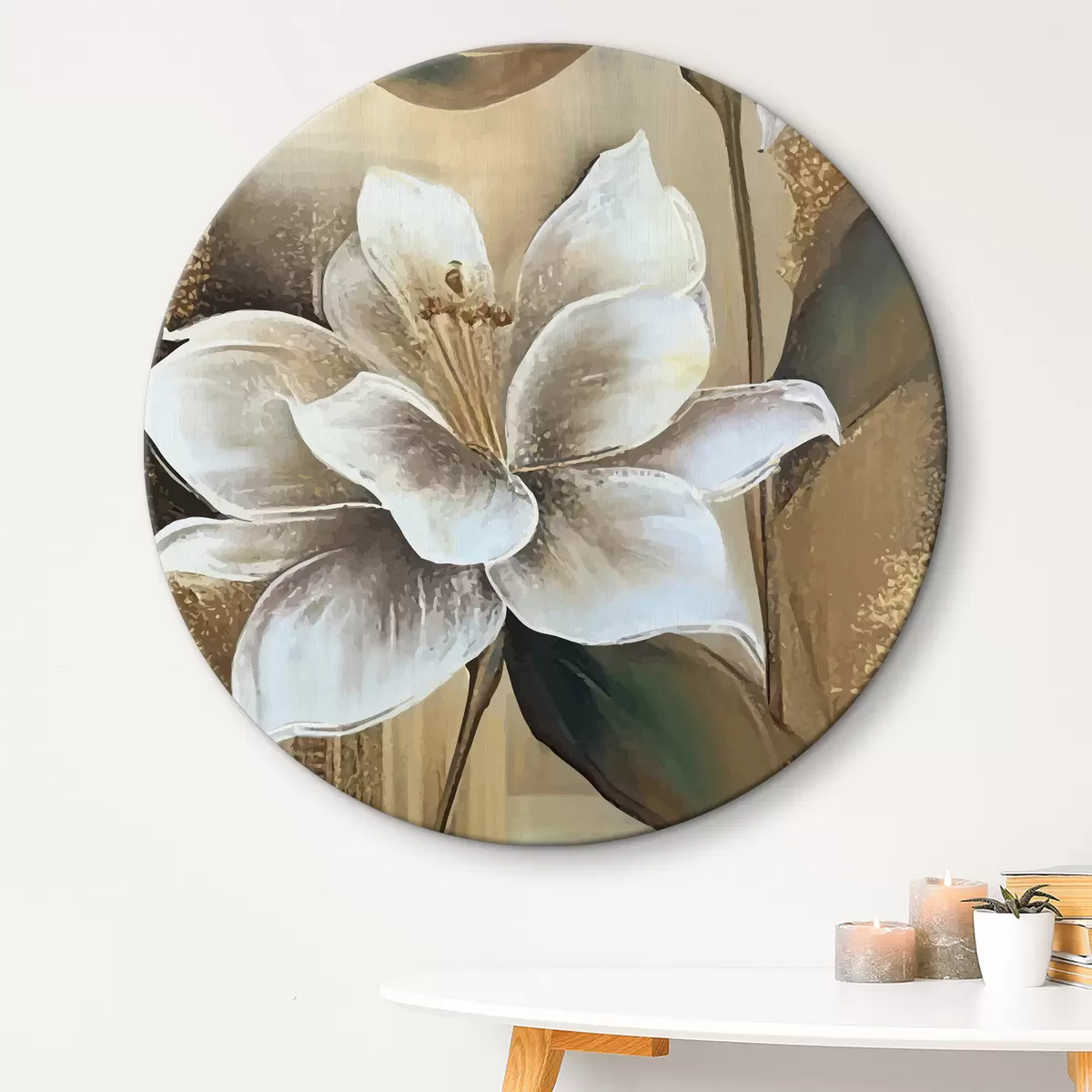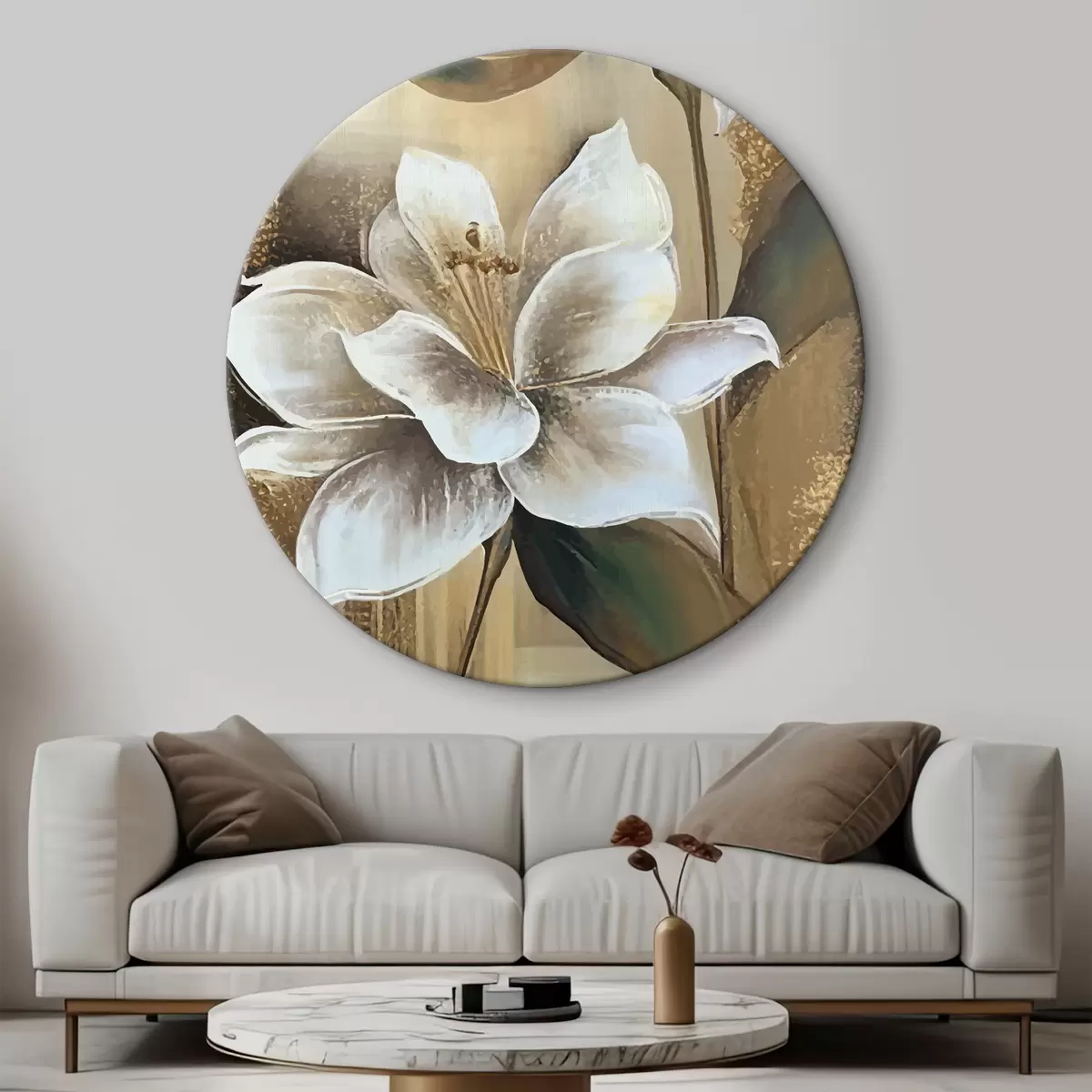 Кругла картина Білі квіти на золотому тлі Nr r37308