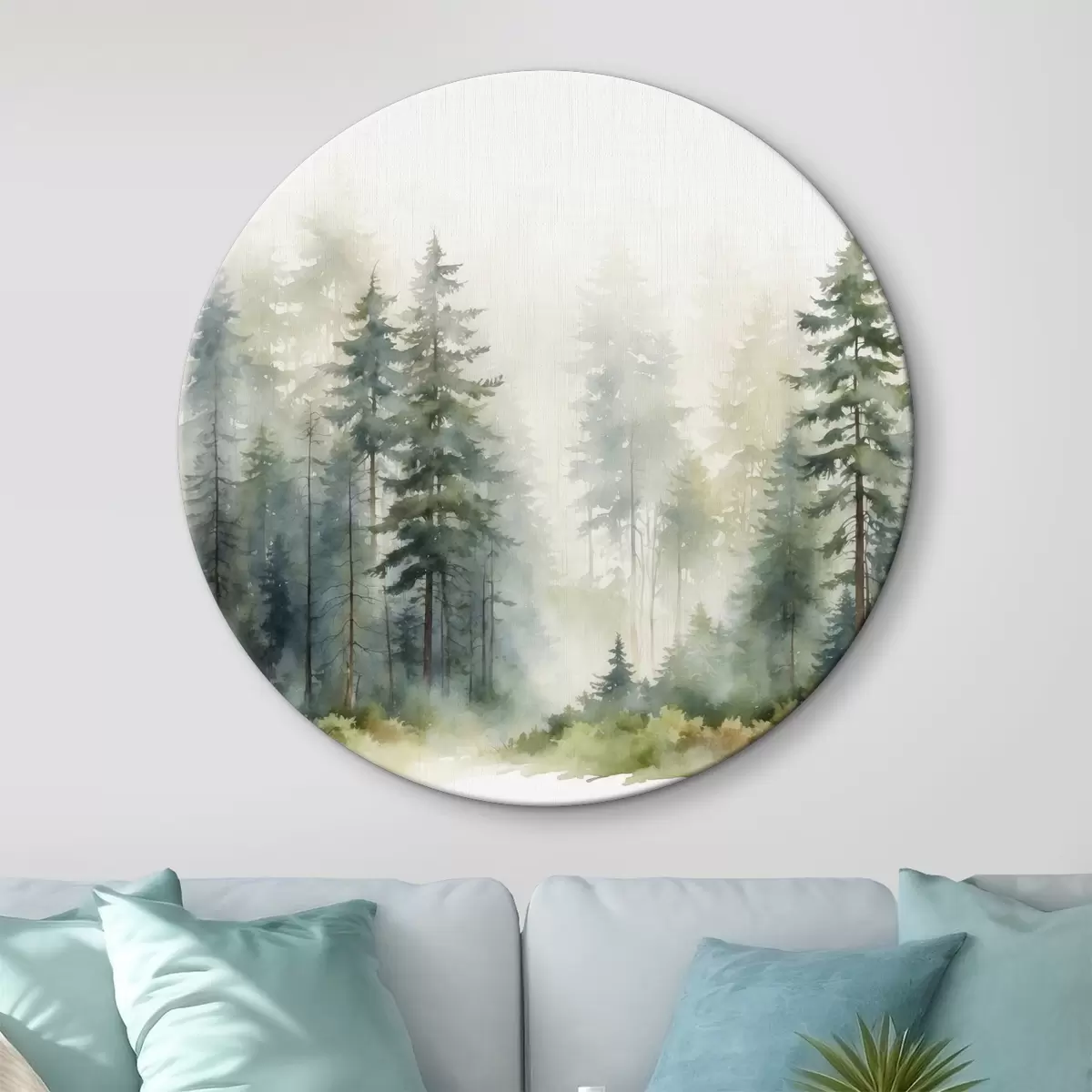 Кругла картина Хвойний ліс у тумані r37337