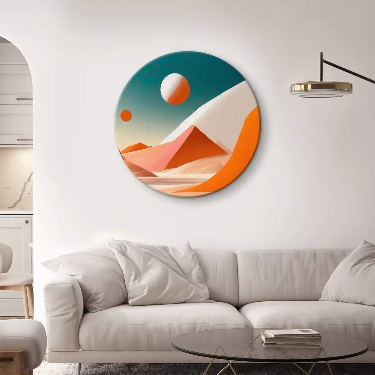 Кругла картина Пустельний пейзаж з піщаними пагорбами та водоймою r37367