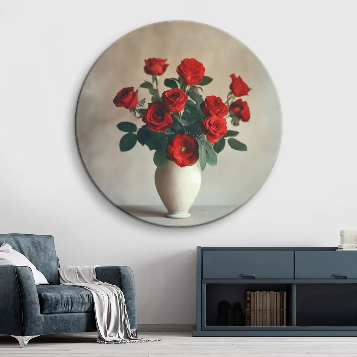 Кругла картина Ваза з червоними трояндами Nr r37376
