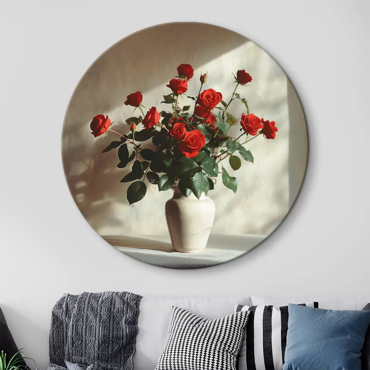 Кругла картина Ваза з червоними трояндами Nr r37379