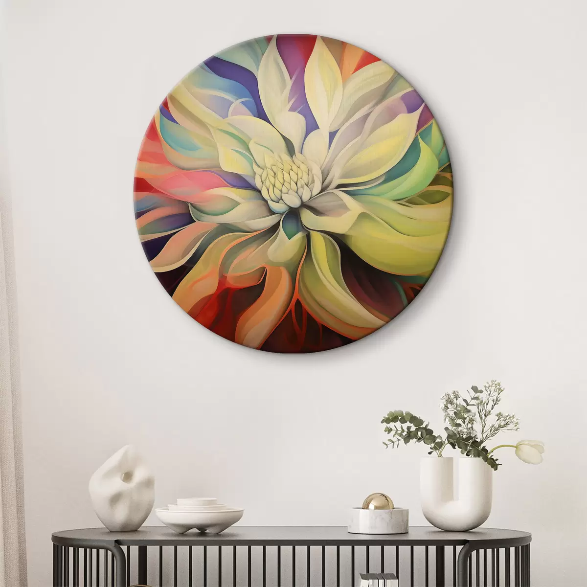 Кругла картина Барвиста квітка з білими пелюстками r37386