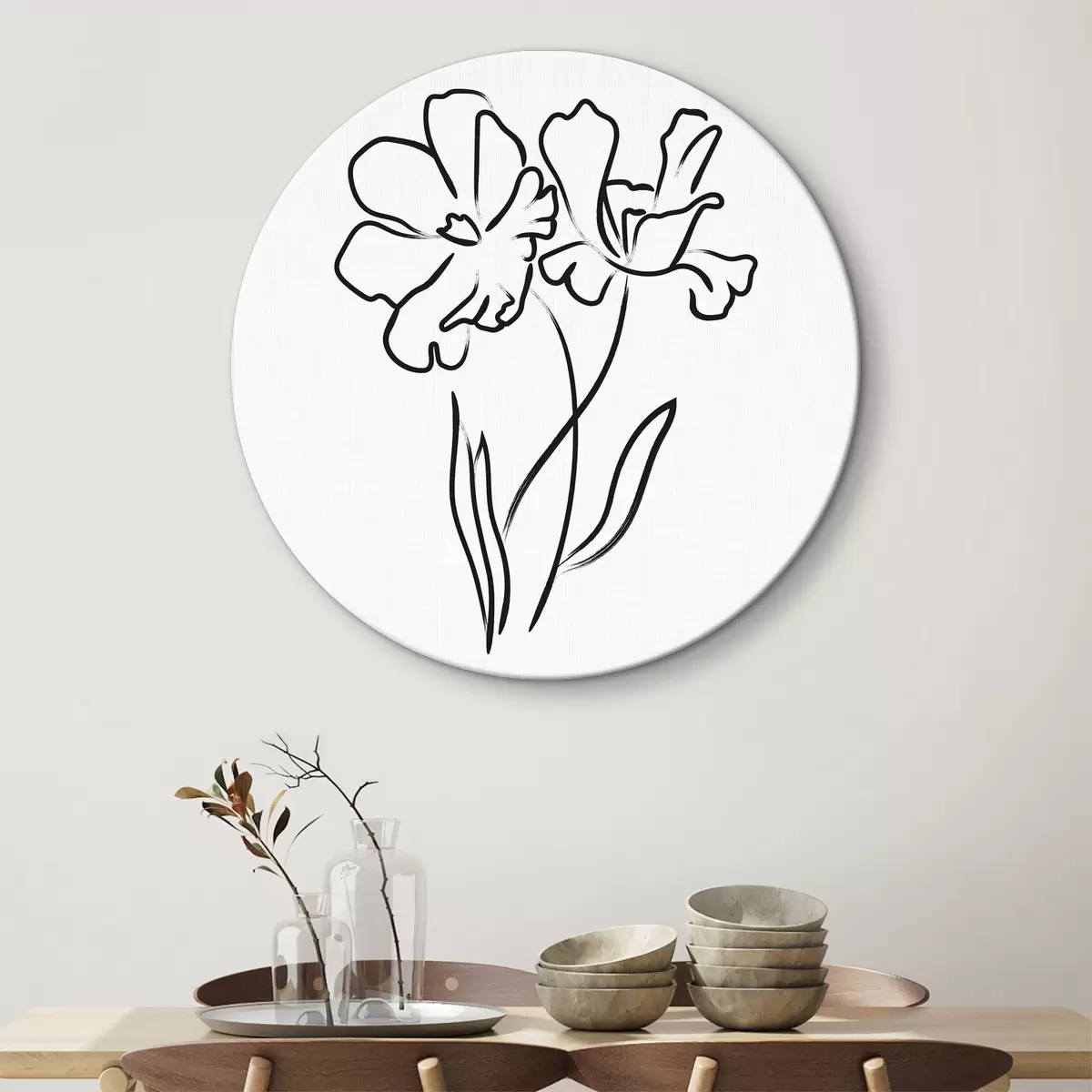 Кругла картина Малювання квітів на білому тлі Nr r37403