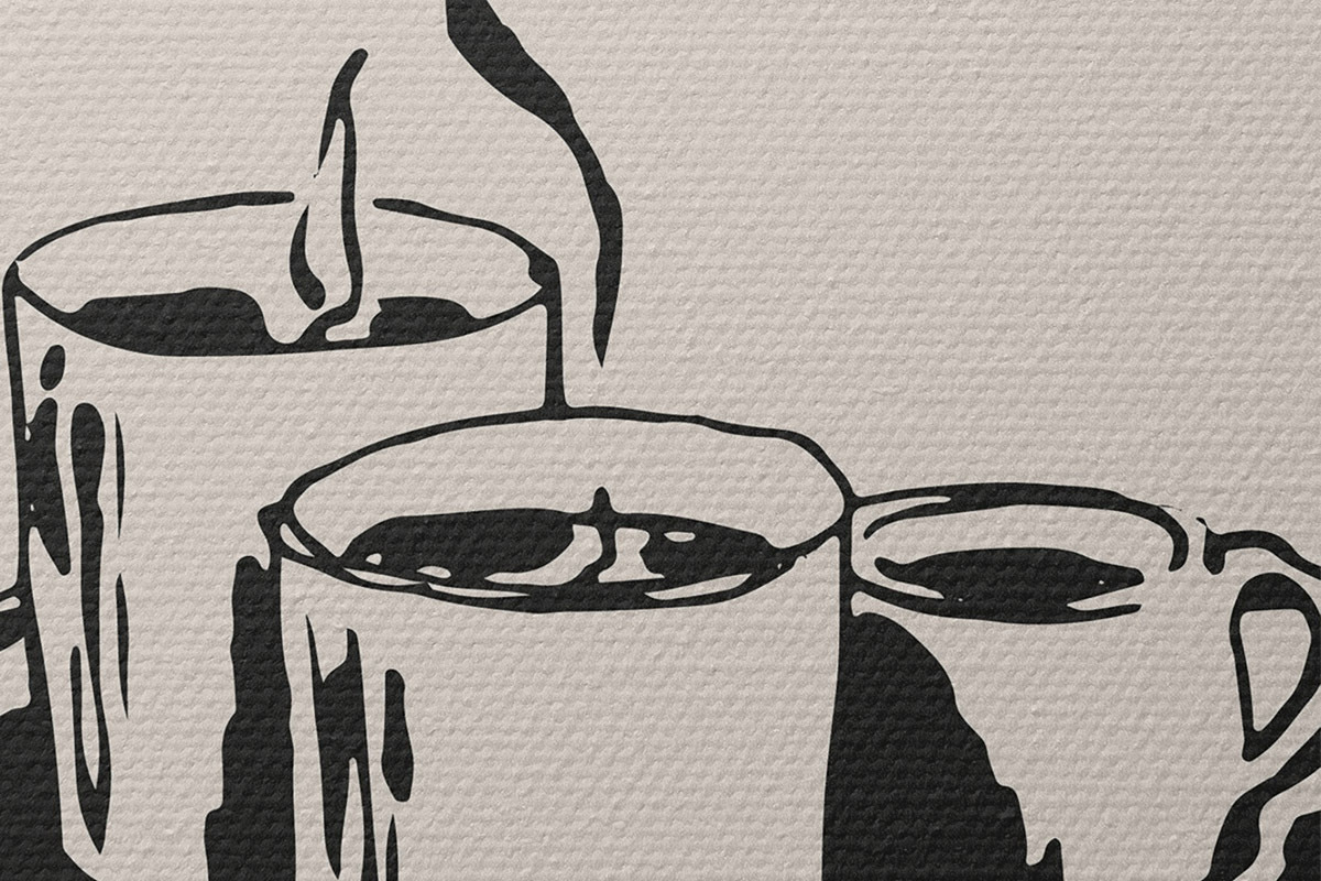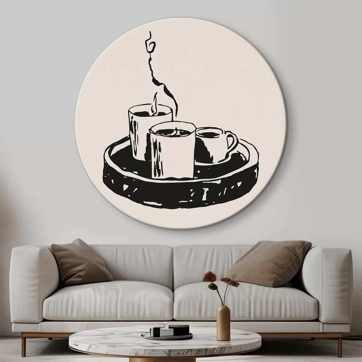 Кругла картина Малюнок таці з кавовими горнятками Nr r37405