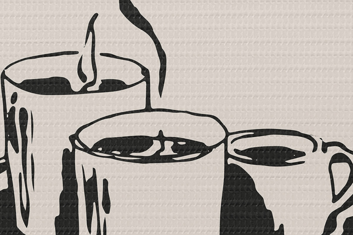 Кругла картина Малюнок таці з кавовими горнятками r37405