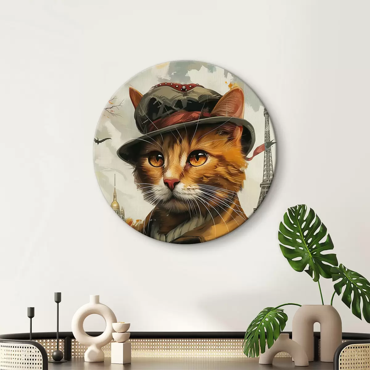 Кругла картина Кіт у капелюсі та пальто Nr r37457