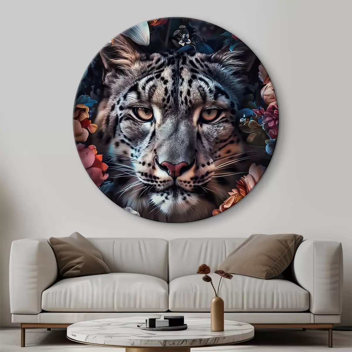 Кругла картина Тигр у квітах r37463