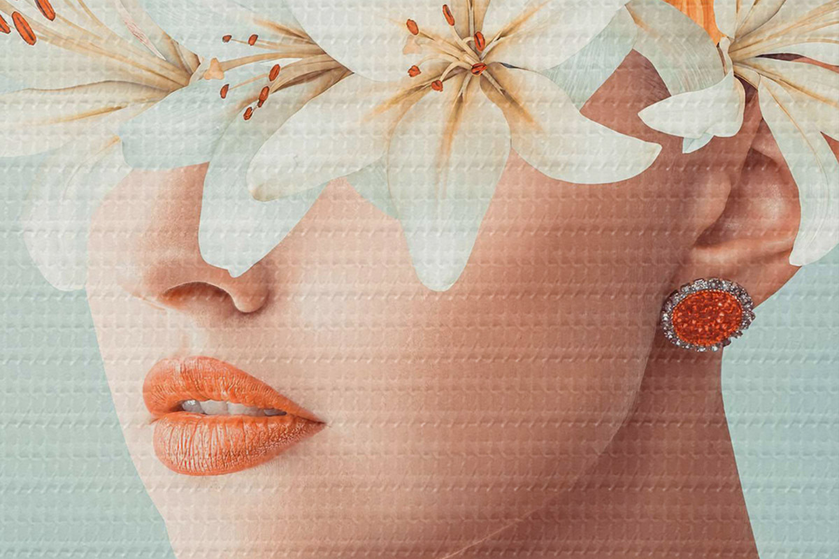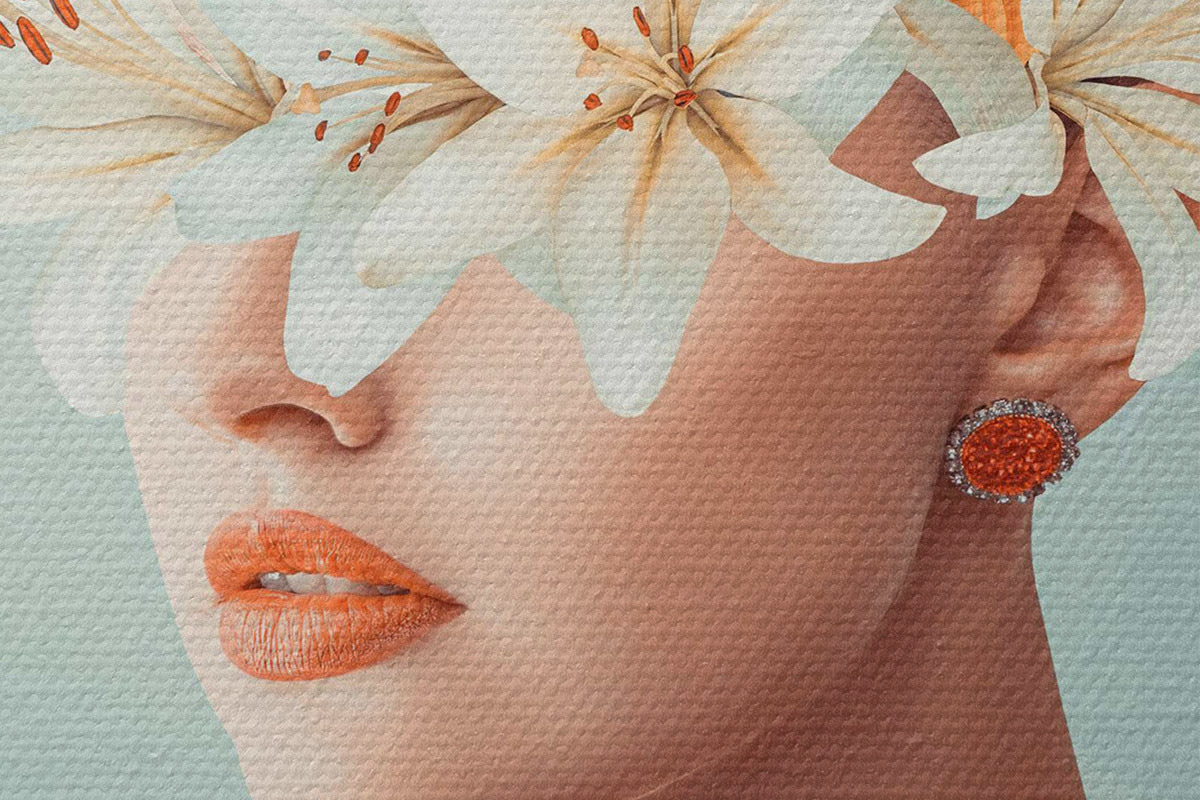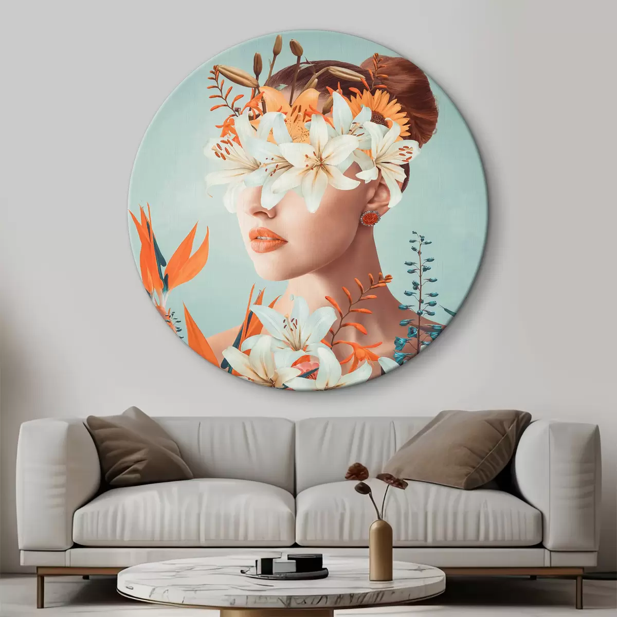 Кругла картина Жінка з квітами навколо очей Nr r37480