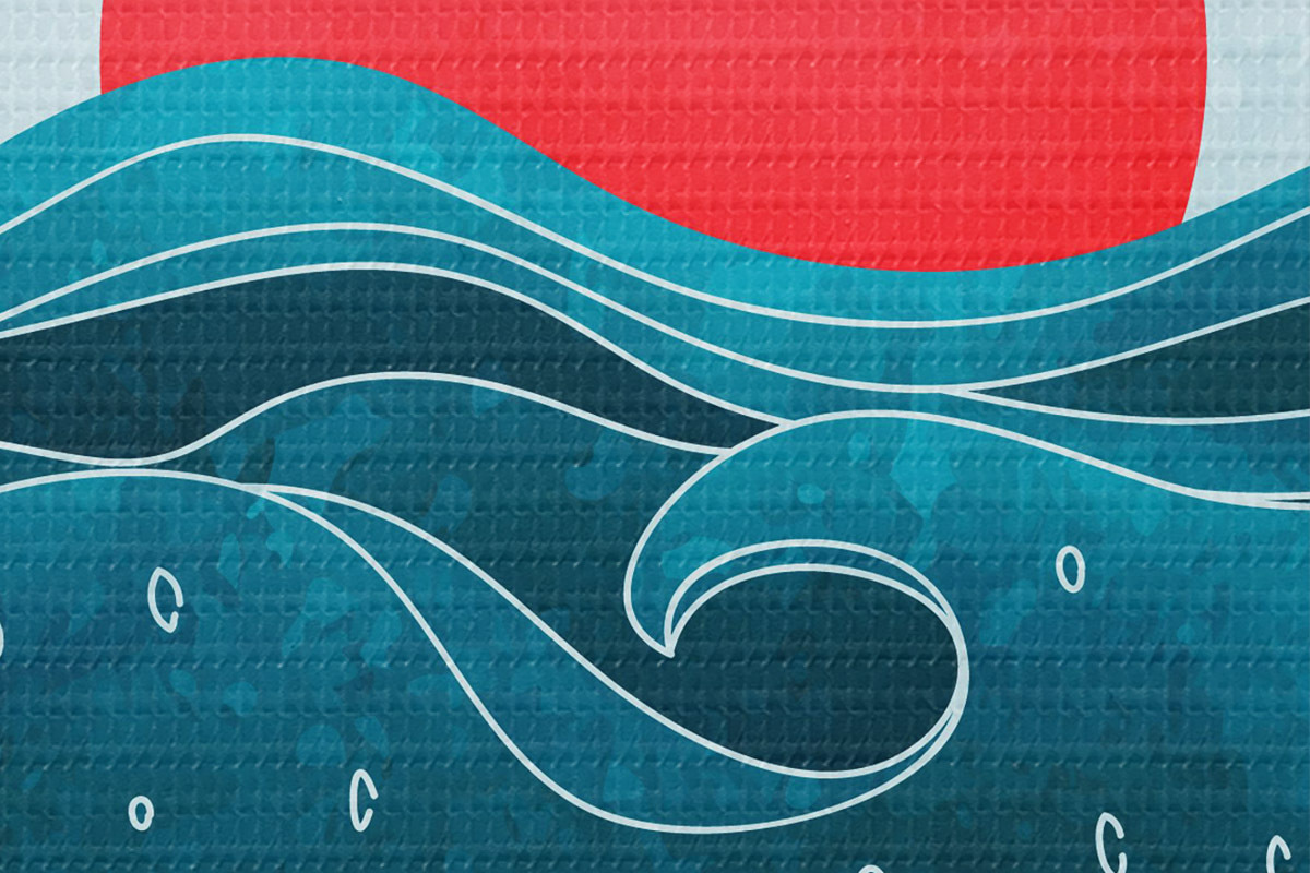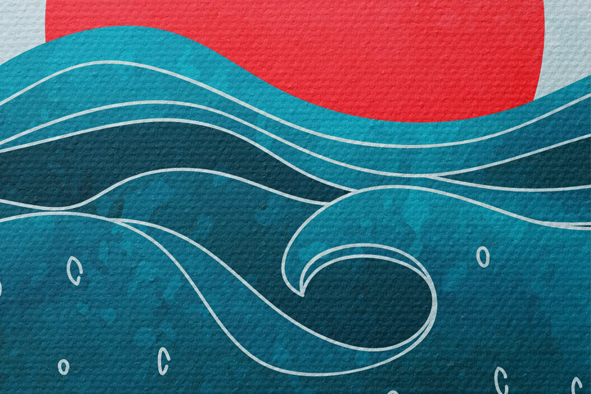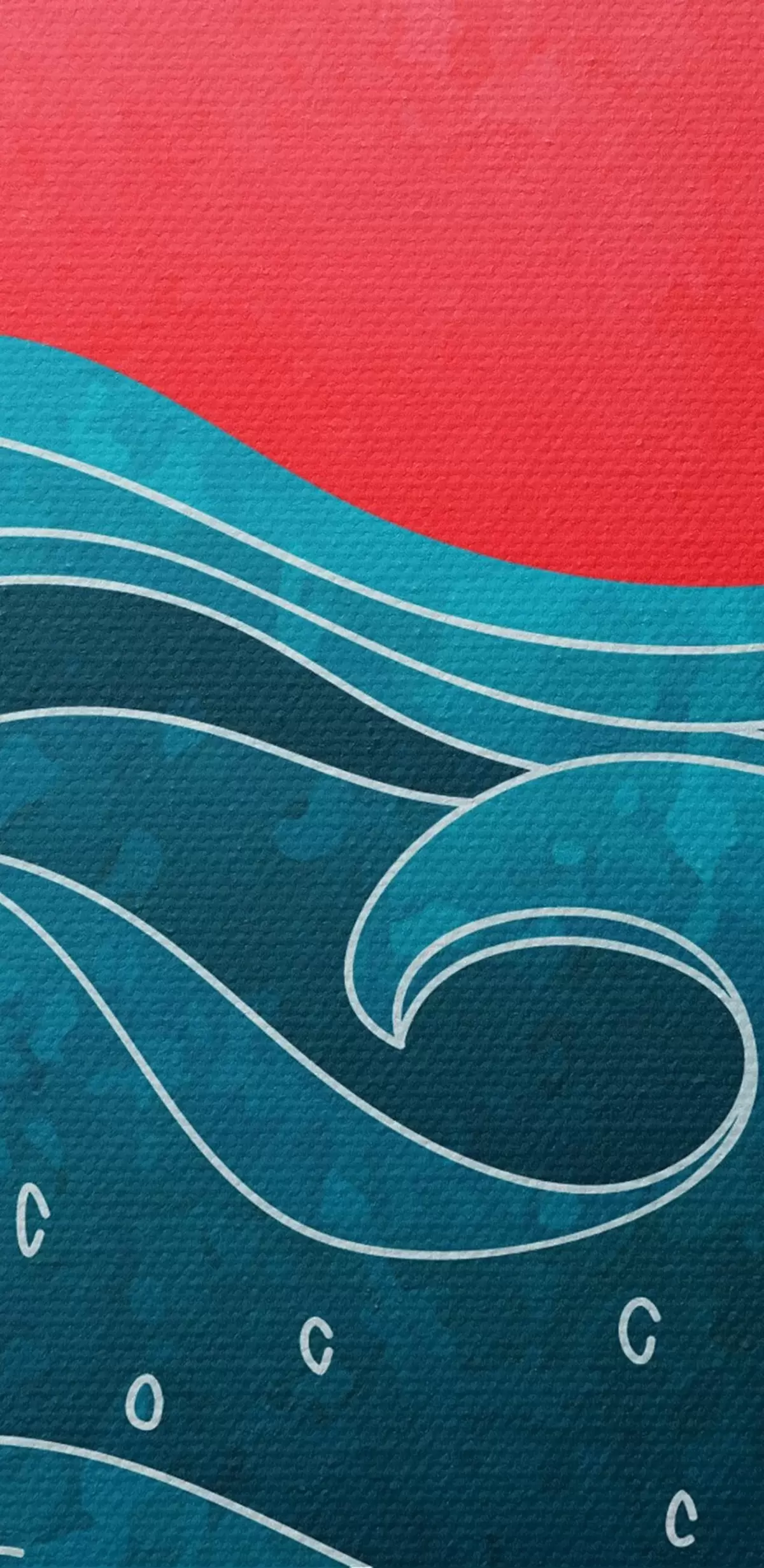 Кругла картина Вода з хвилями та червоним сонцем r37640