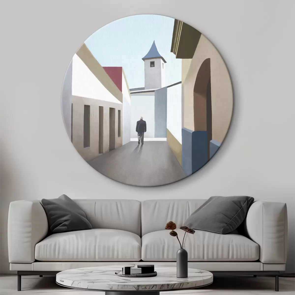 Кругла картина Чоловік іде вузькою вуличкою Nr r37784