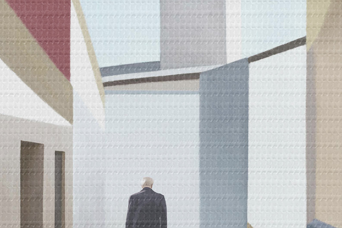 Кругла картина Чоловік іде вузькою вуличкою r37784