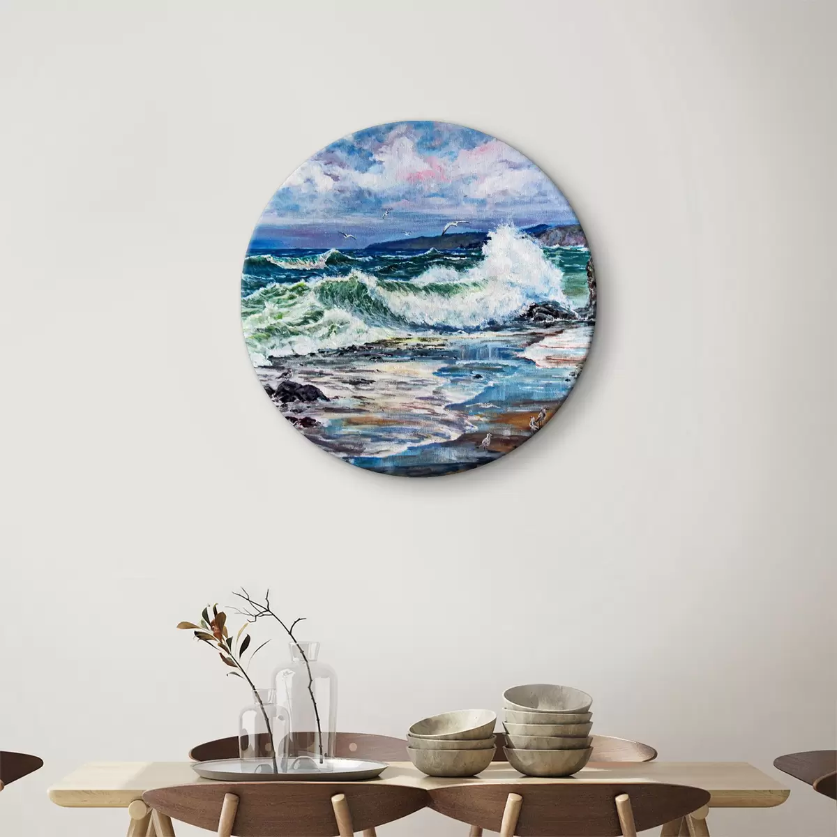 Кругла картина Зображення хвиль, що розбиваються об пляж Nr r37785