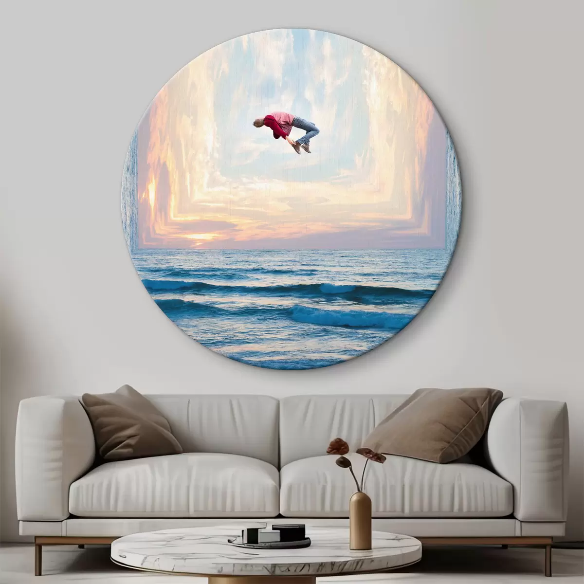 Кругла картина Чоловік стрибає в повітрі над водою Nr r37786