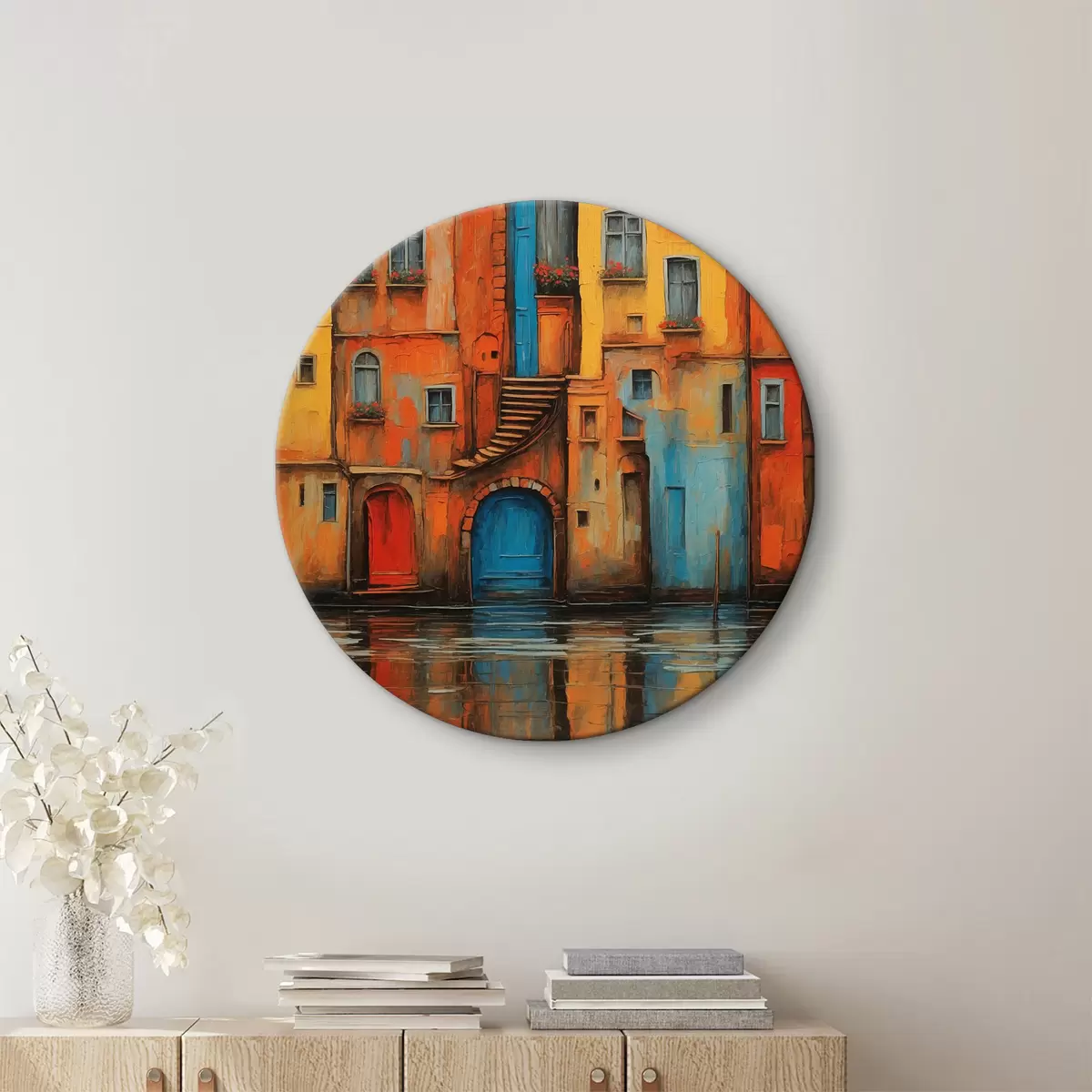 Кругла картина Зображення будівлі зі сходами та синіми дверима Nr r37789