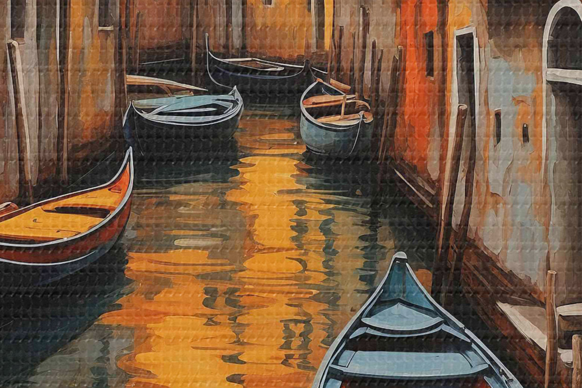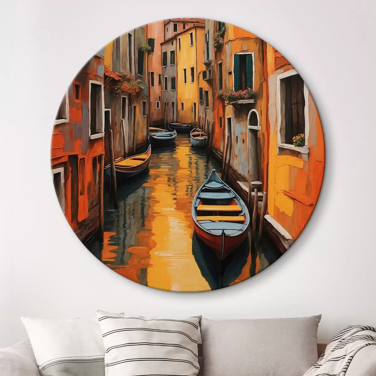 Кругла картина Човен у каналі між будівлями Nr r37790