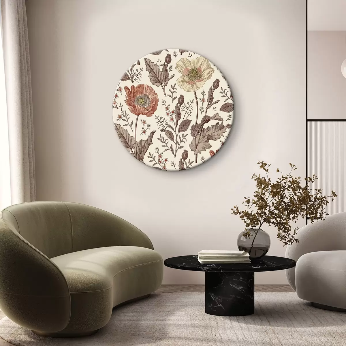 Кругла картина Візерунок з квітами та листям r37846