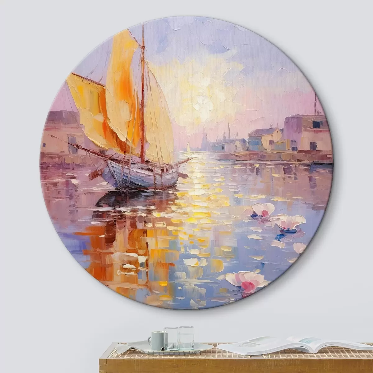 Кругла картина Відпливаючи в барвистий захід сонця Nr r37882