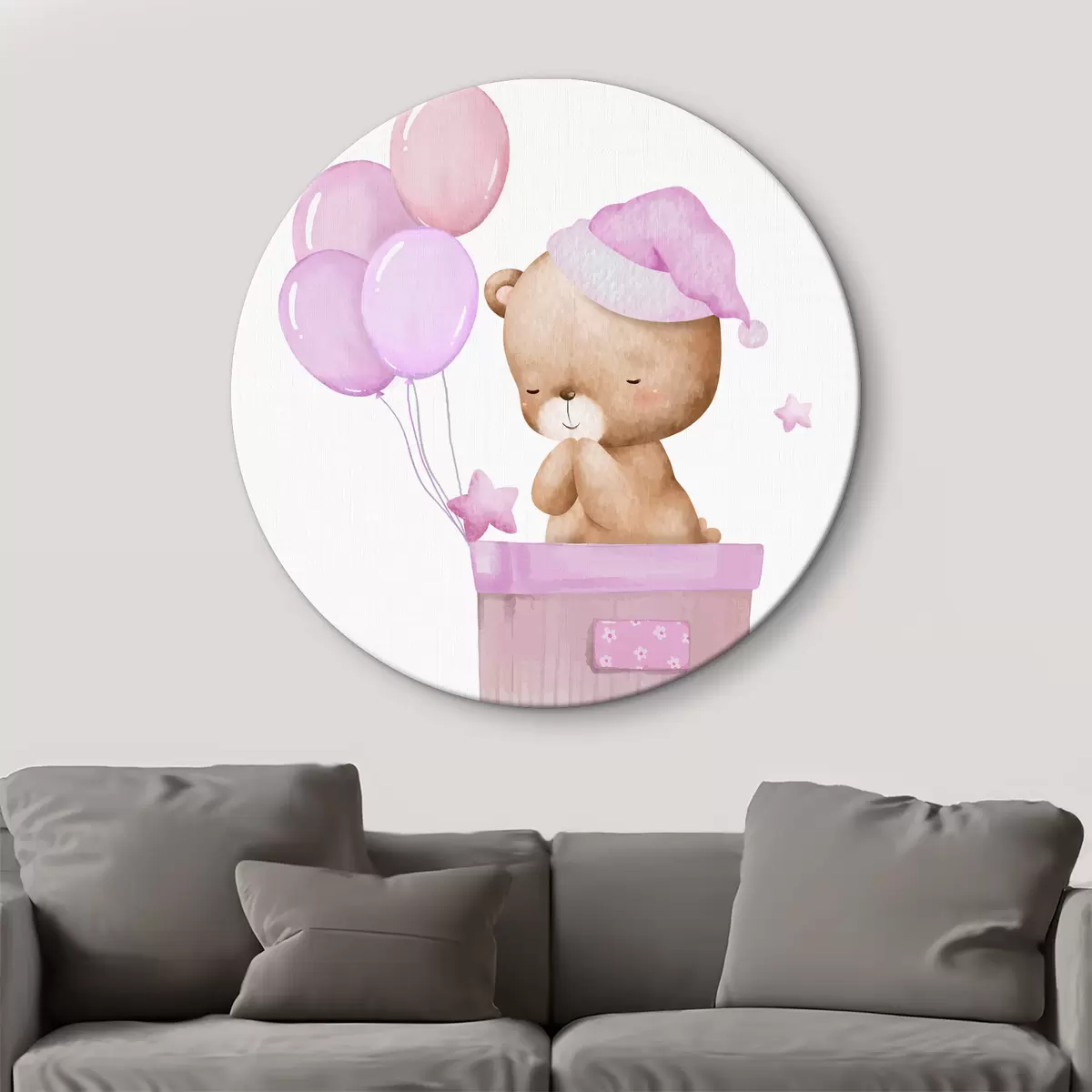 Кругла картина Сплячий плюшевий ведмедик з кульками Nr r37918v2