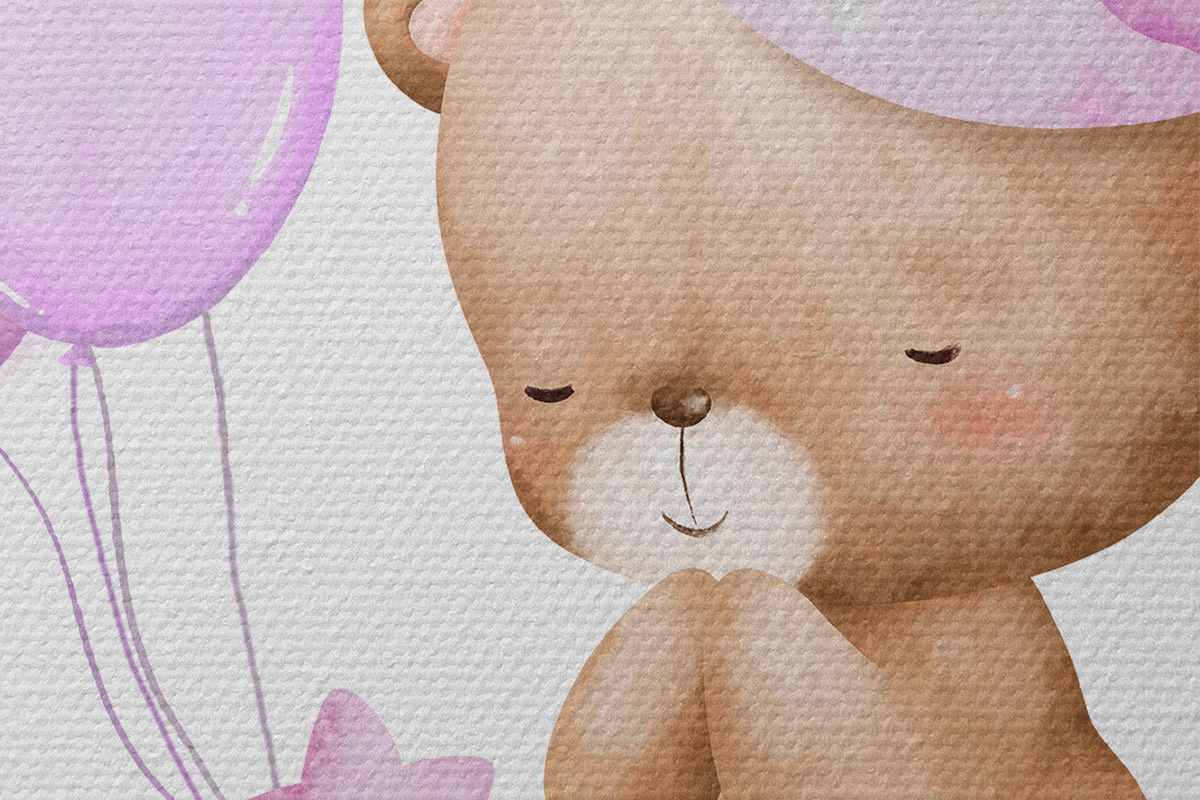 Кругла картина Сплячий плюшевий ведмедик з кульками r37918v2