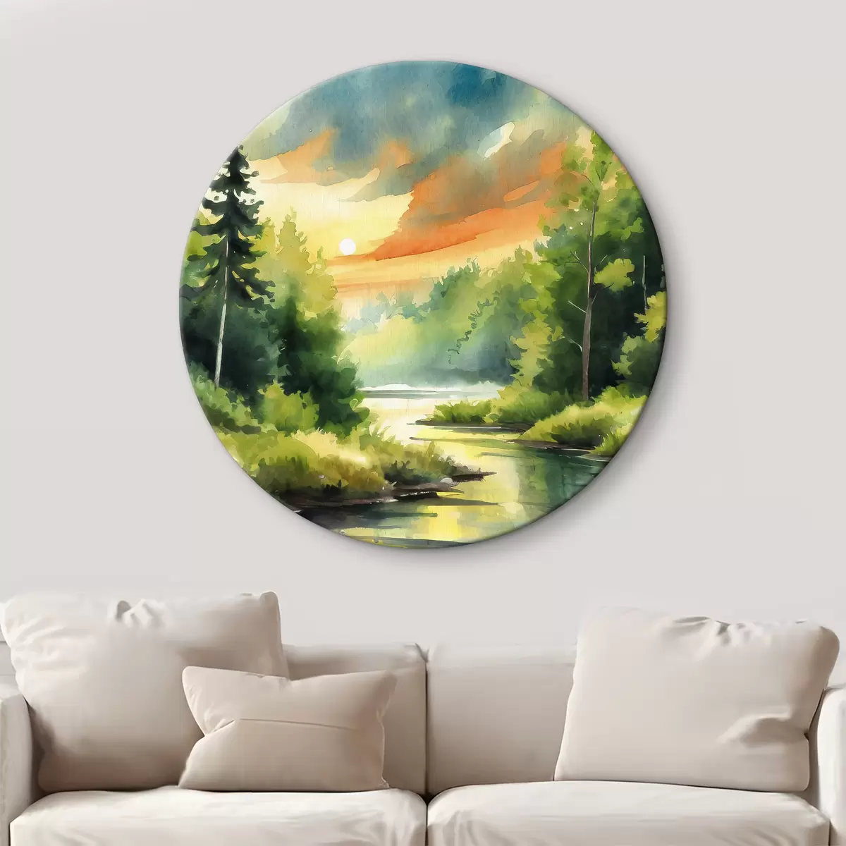 Кругла картина Тихий ліс біля спокійної річки r37953