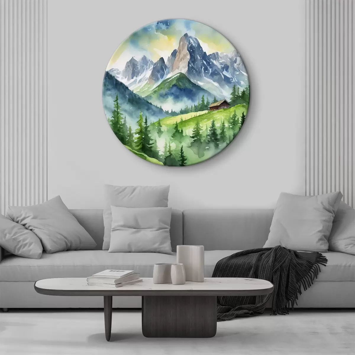 Кругла картина Величні гори під м'яким небом r37959