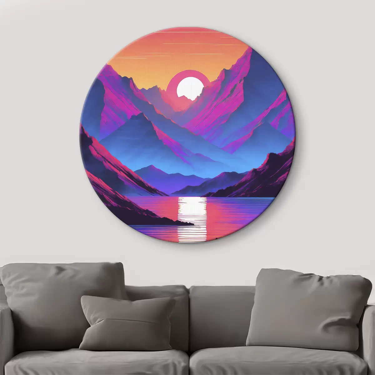 Кругла картина Величні гори на заході сонця r37999